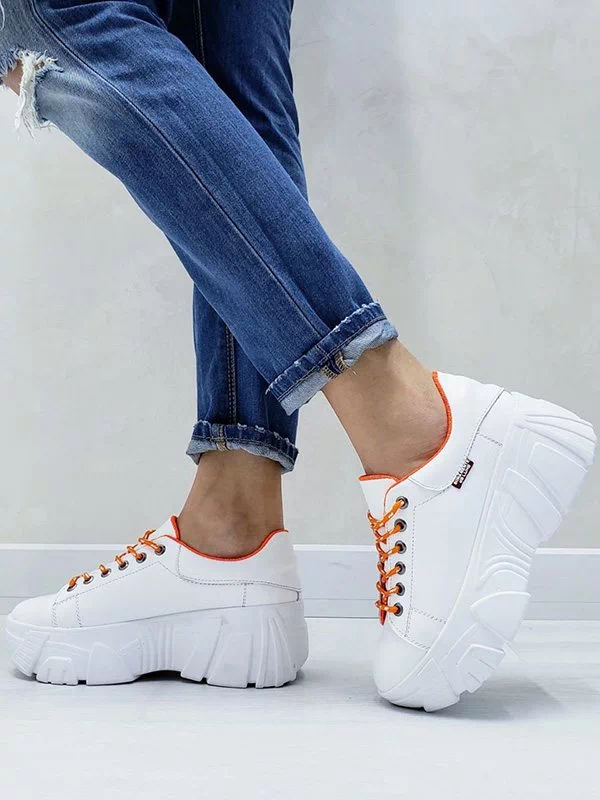 Be the first to review “Білі кросівки з натуральної шкіри з помаранчевими вставками”