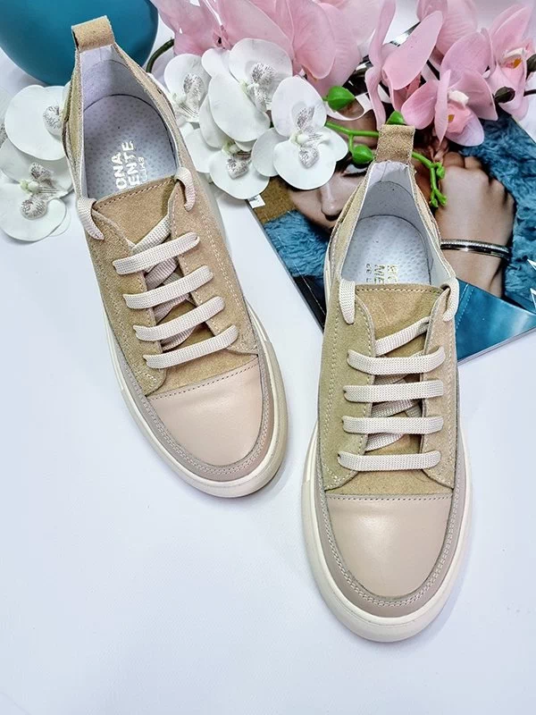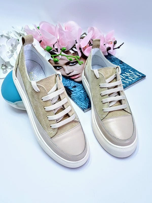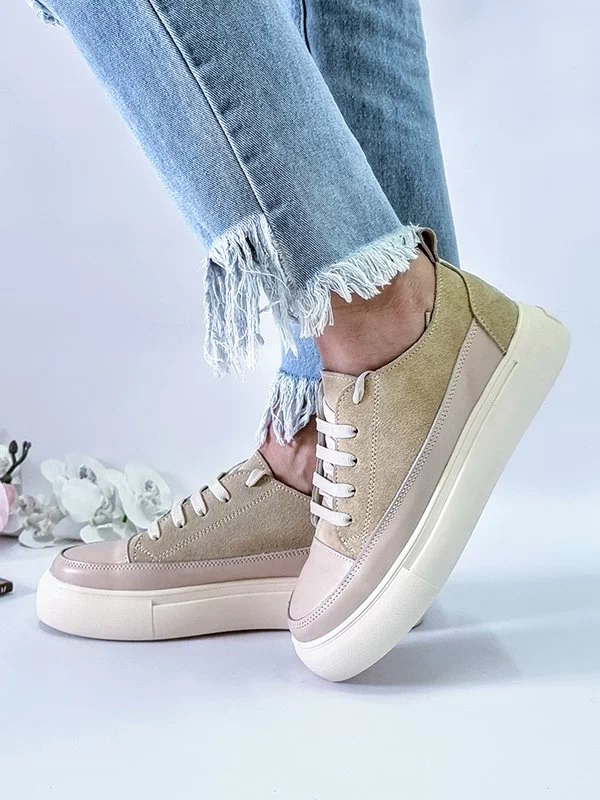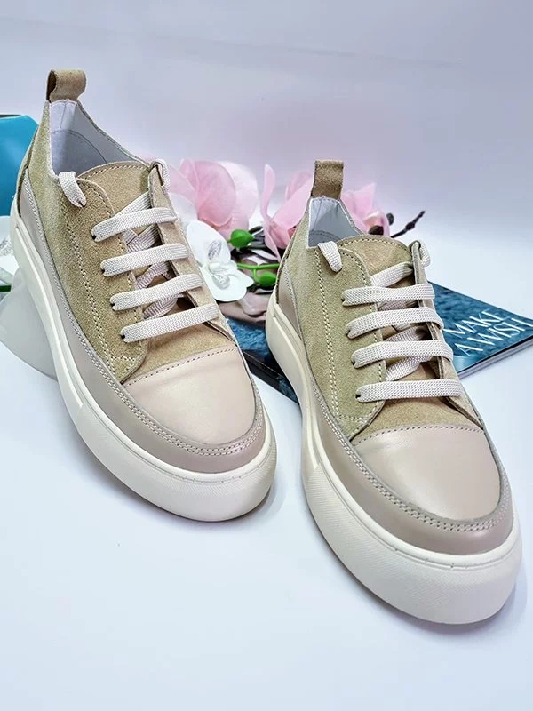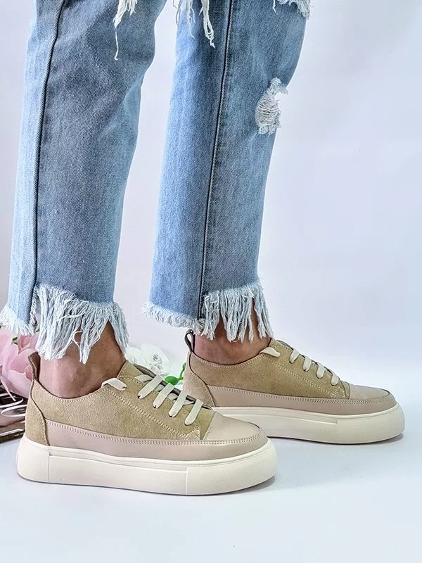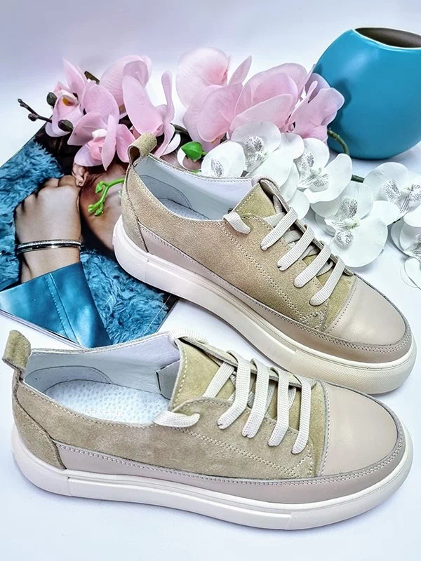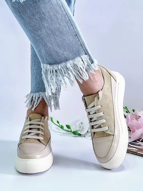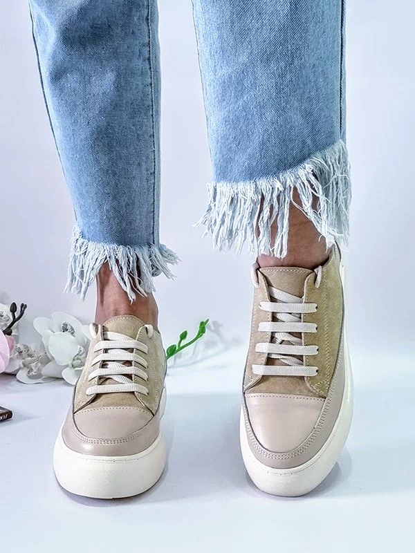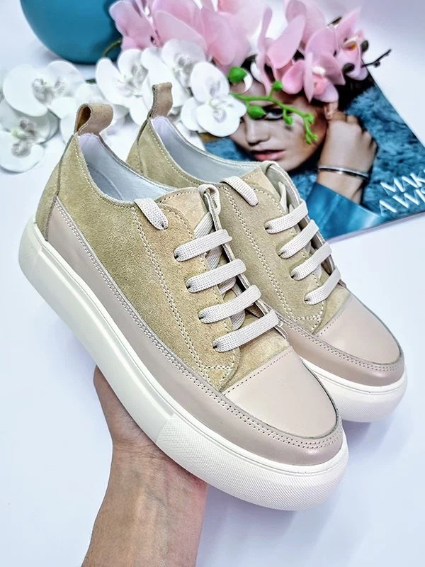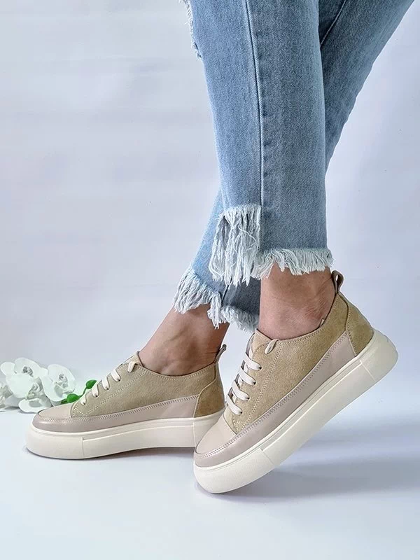 Світло-бежеві кросівки з натуральної замші та шкіри