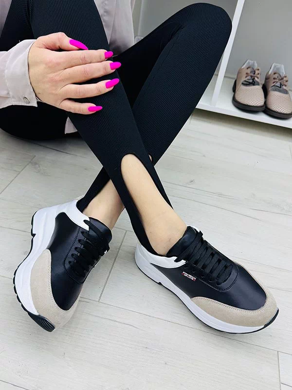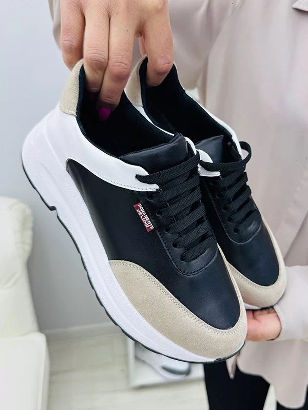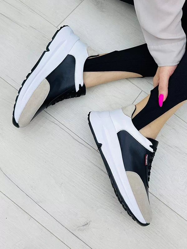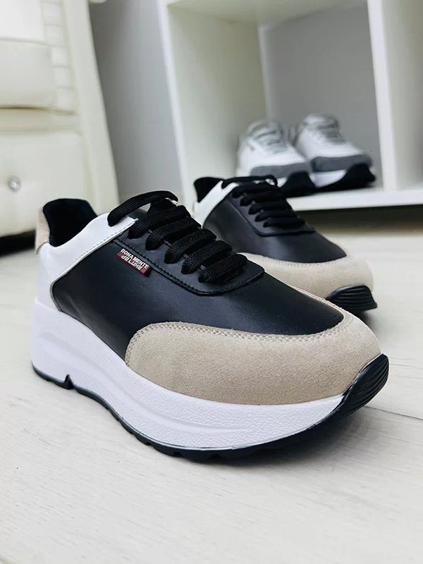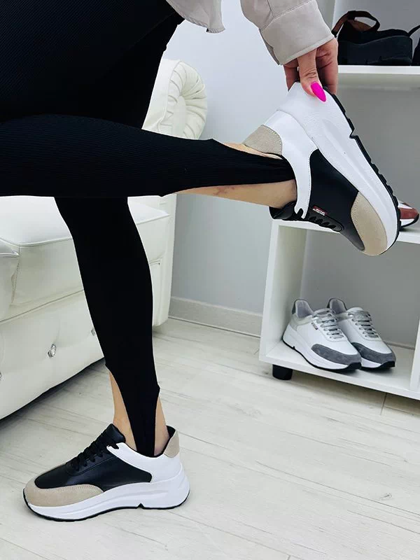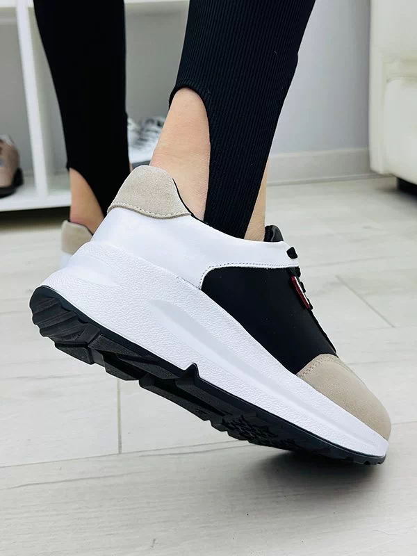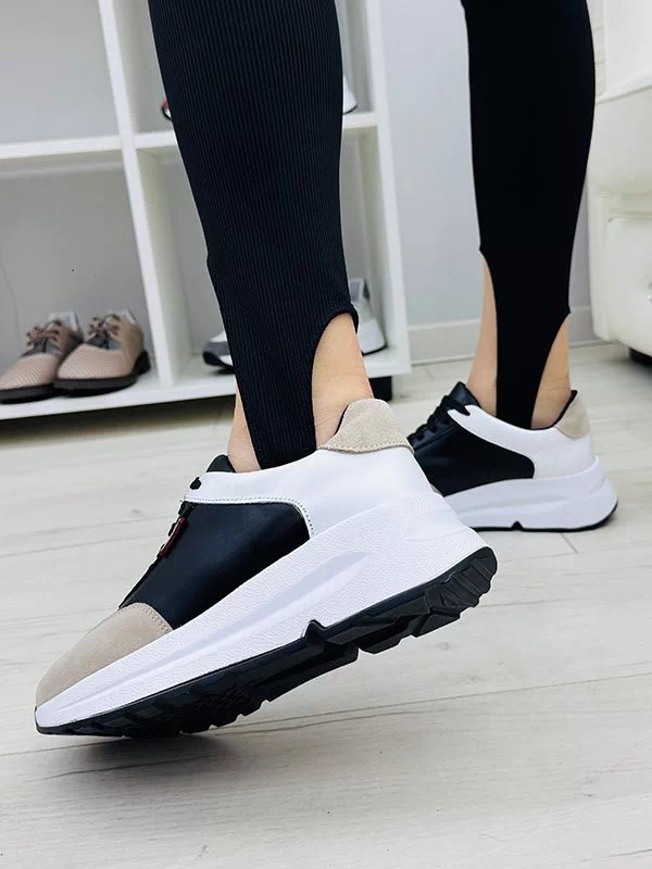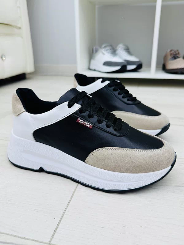 Потрясающие женские кроссовки в бежево-бело-черном исполнении на все случаи жизни.