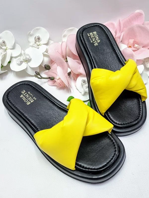 Интересные женские шлепанцы в желтом исполнении на все случаи жизни.