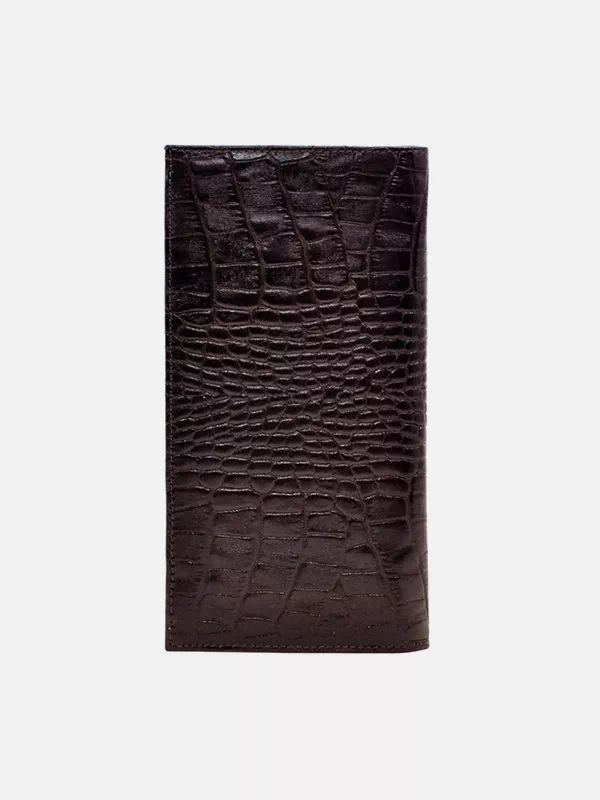 Вертикальный кошелек из коричневой фактурной натуральной кожи