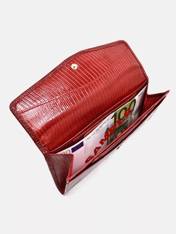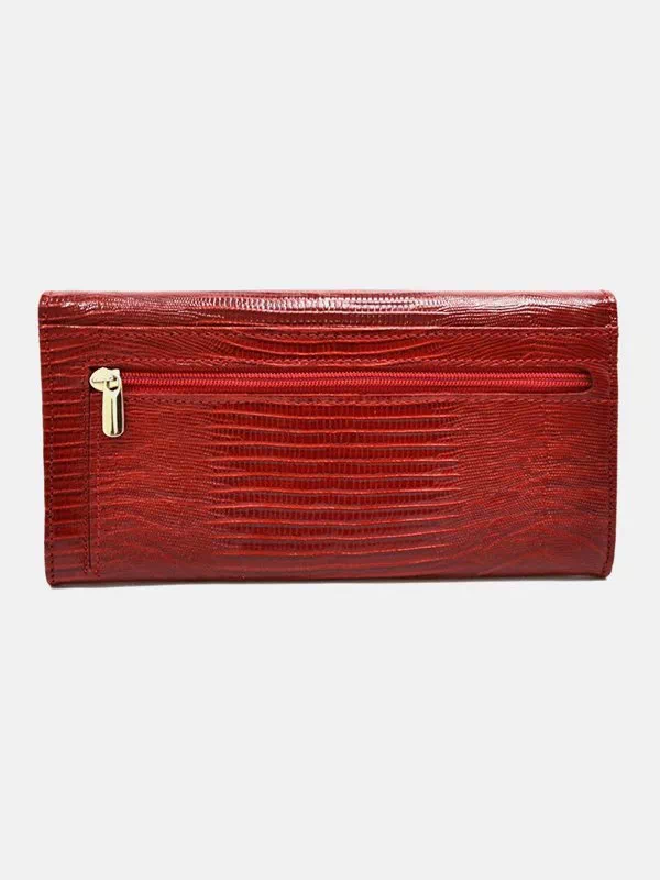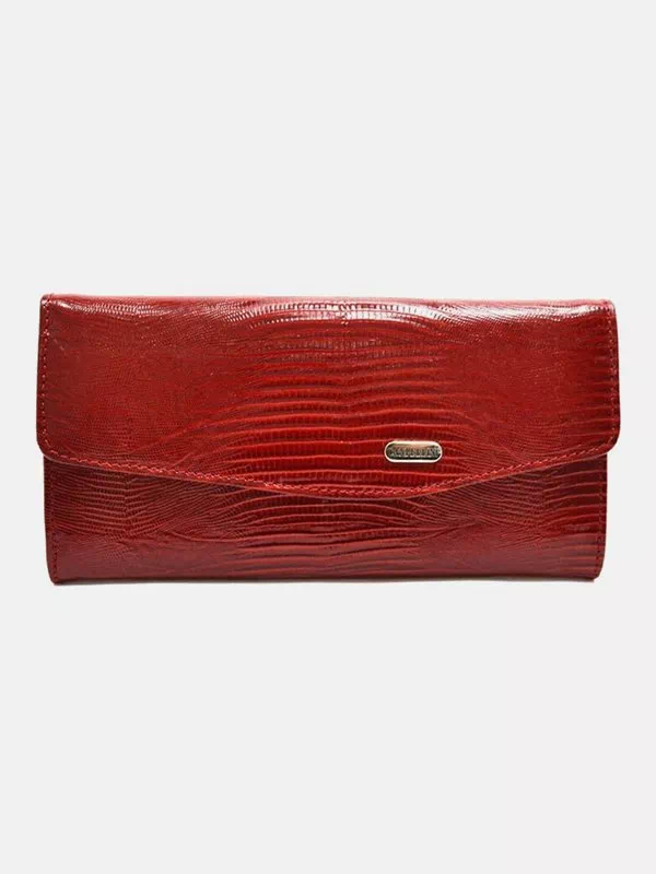 Гаманець з червоної фактурної лакованої шкіри «під рептилію»
