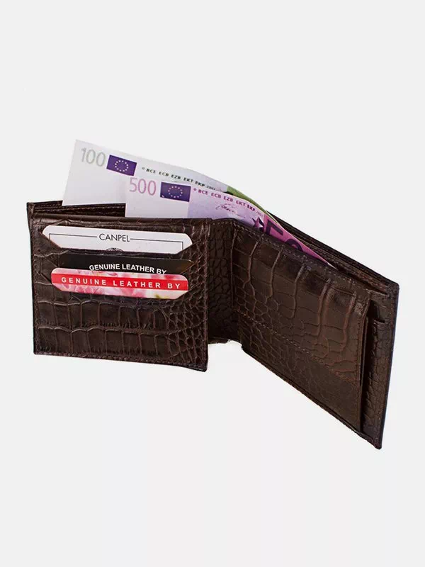 Мужское портмоне C-0411 – оптимальный вариант в сочетании с любым стилем. Изготовлено из фактурной натуральной кожи «под крокодила» в коричневом исполнении. Аксессуар неприхотлив в уходе, имеет яркий внешний вид, качественный пошив, пользуется значительным спросом на украинском рынке, особенно у молодежи. Данный мужской кошелек выгодно подчеркнет ваш стиль. Шикарное решение в качестве подарка для любого мужчины. Страна производитель – Турция.