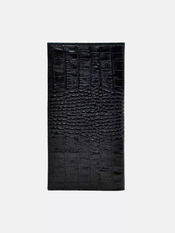Черный вертикальный кошелек из фактурной натуральной кожи