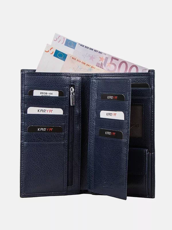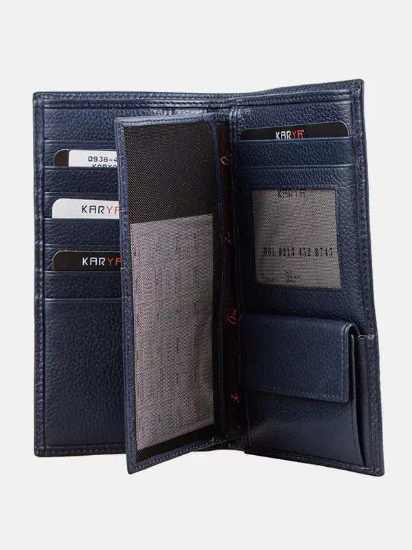 Синий вертикальный кошелек из зернистой натуральной кожи