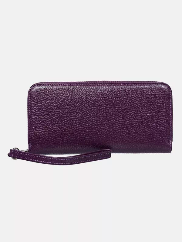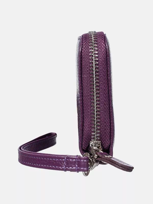 Фиолетовый кошелек-клатч из фактурной натуральной кожи
