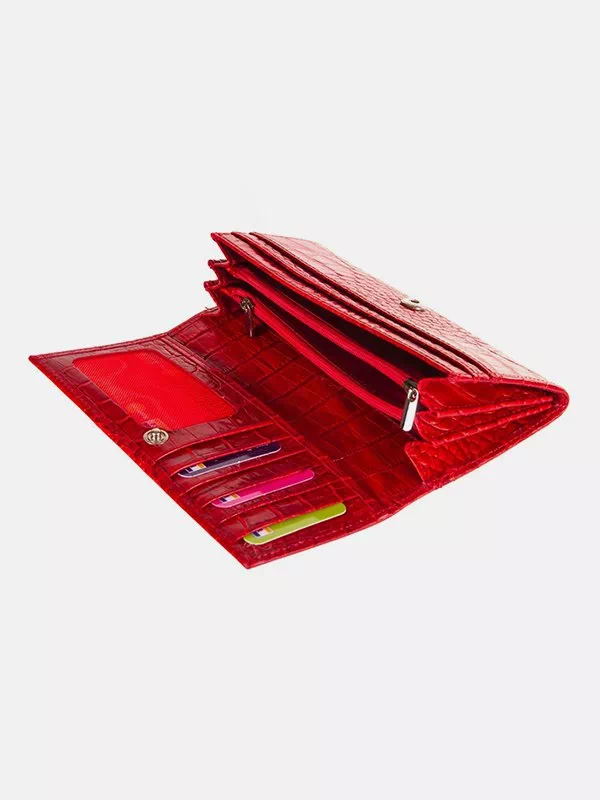 Кошелек из красной натуральной кожи «под крокодила»