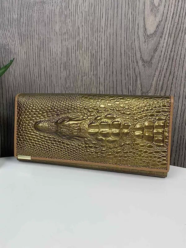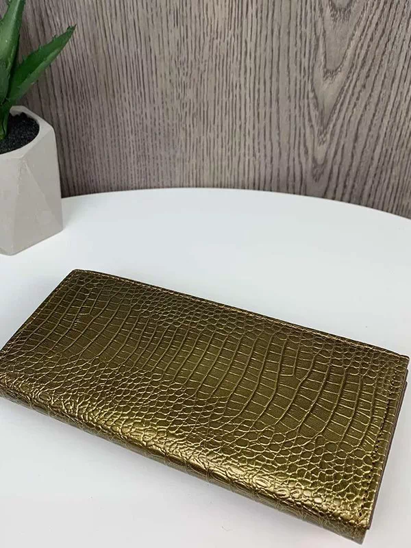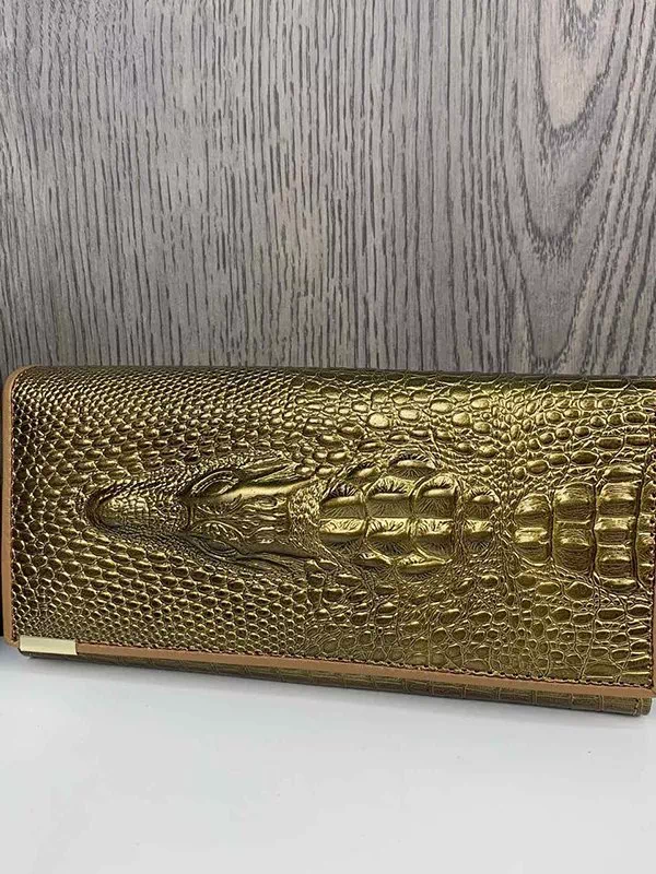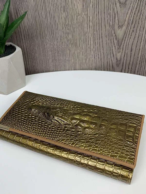 Золотистый кошелек из натуральной кожи «под крокодила»