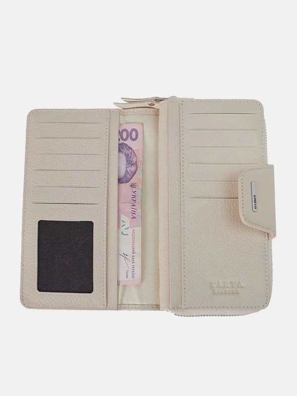 Женский кошелёк K-8613 – идеальный вариант в сочетании с любым стилем. Изготовлен из фактурной натуральной кожи бежевого оттенка. Аксессуар неприхотлив в уходе, имеет элегантный внешний вид, качественный пошив, пользуется повышенным вниманием на украинском рынке. Добавит элегантности практически любому образу. Прекрасный выбор в качестве подарка для любой женщины. Страна производитель – Турция.