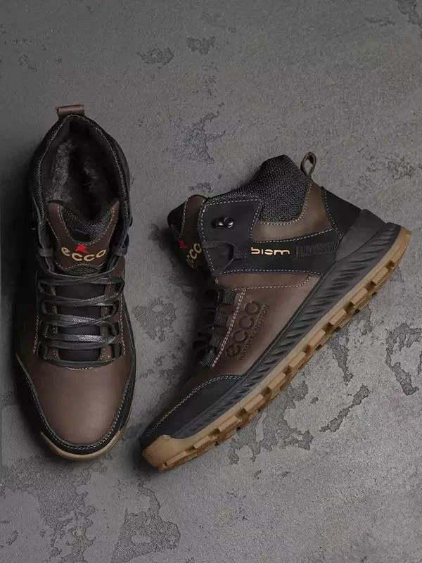 Интересные зимние мужские полуботинки черно-коричневого цвета на любые случаи жизни.