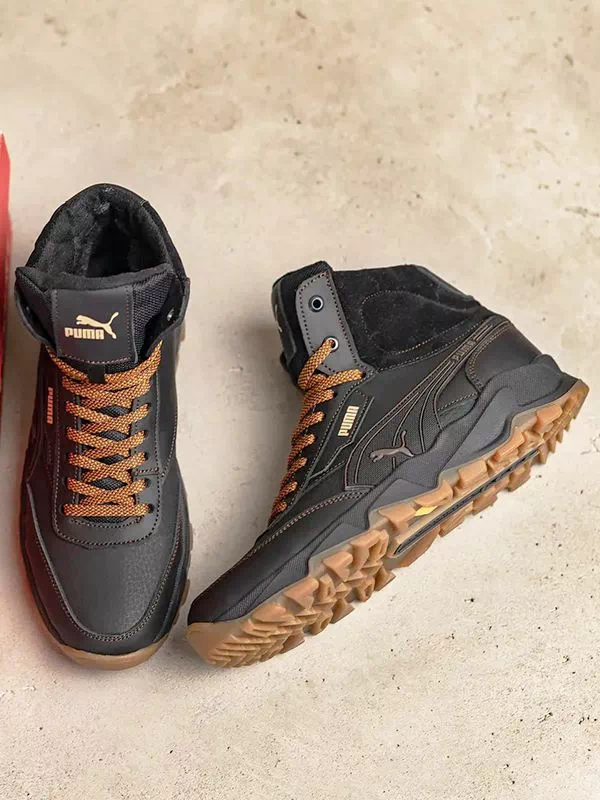 Яркие зимние мужские хайтопы в бежево-черном исполнении на все случаи жизни.