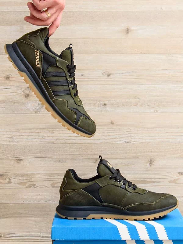 Мощные мужские кроссовки черно-оливкового цвета на любые случаи жизни.