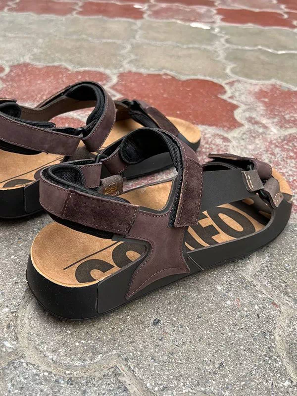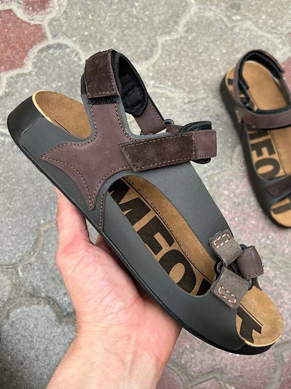 Коричневые сандали из натуральной кожи с замшевыми вставками