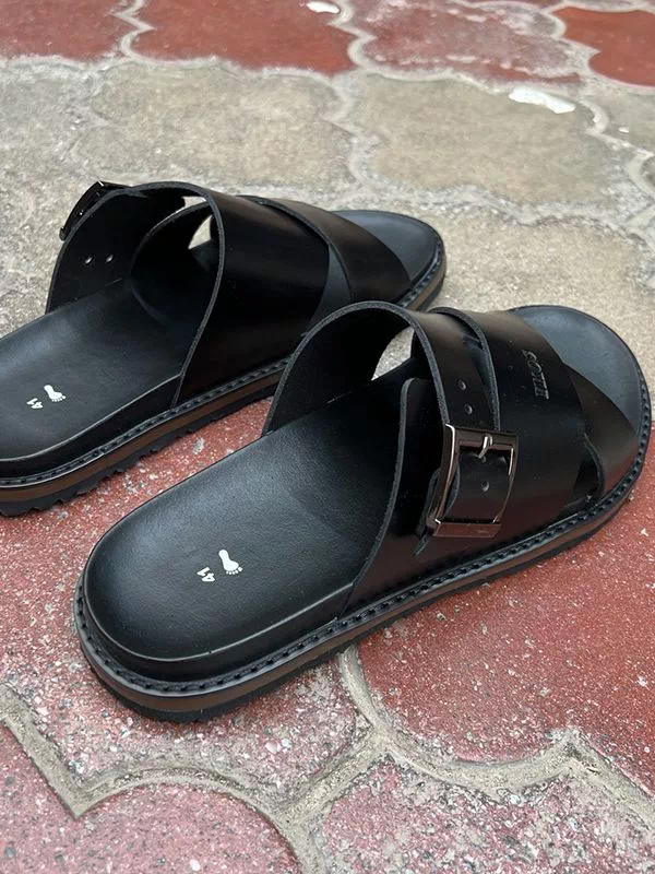 Элегантные мужские шлепанцы в черном исполнении на все случаи жизни.