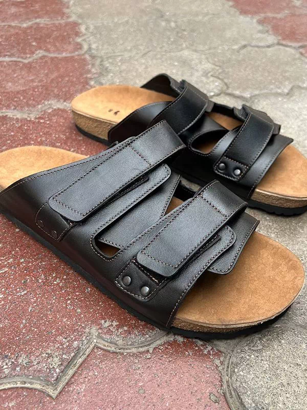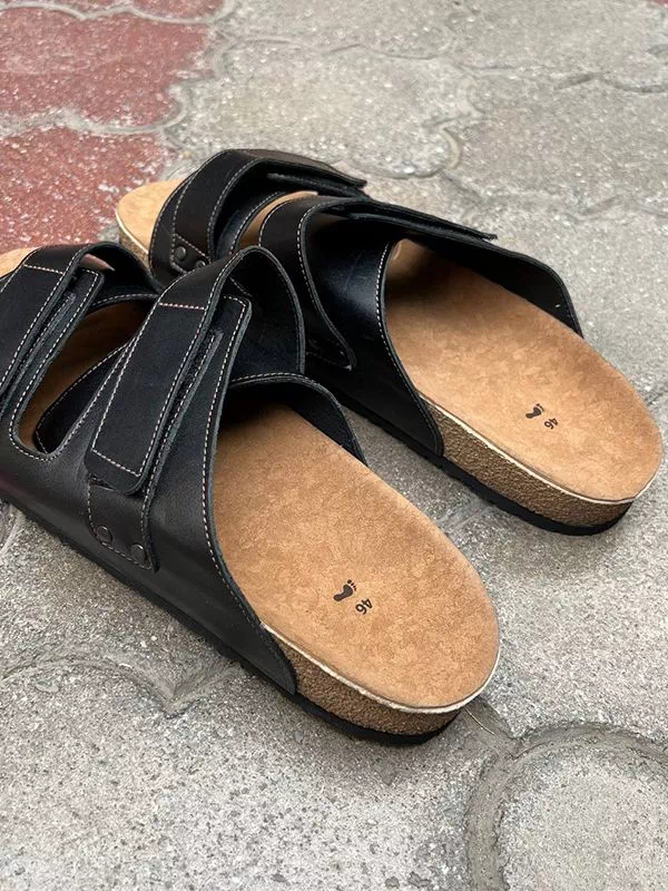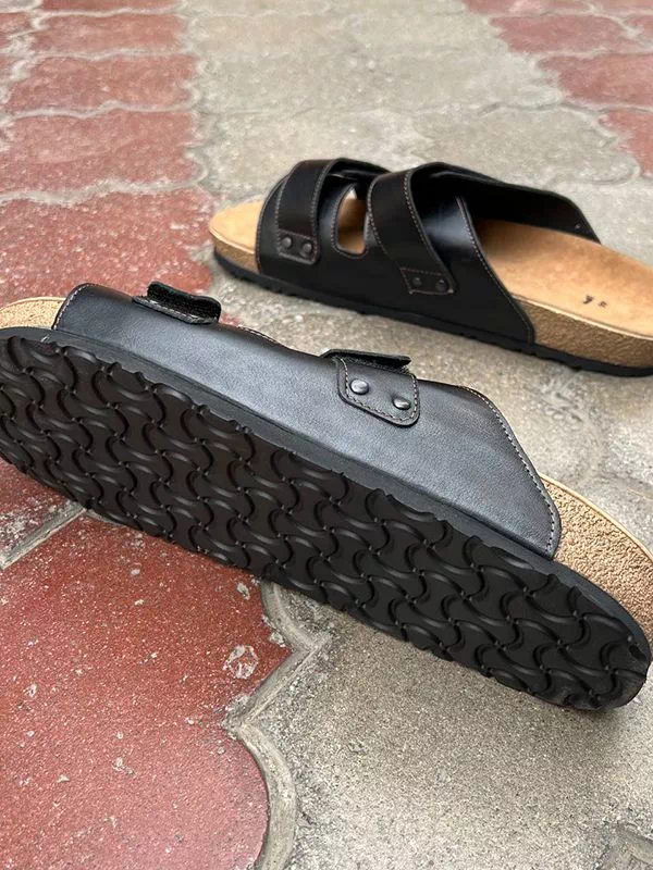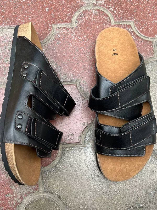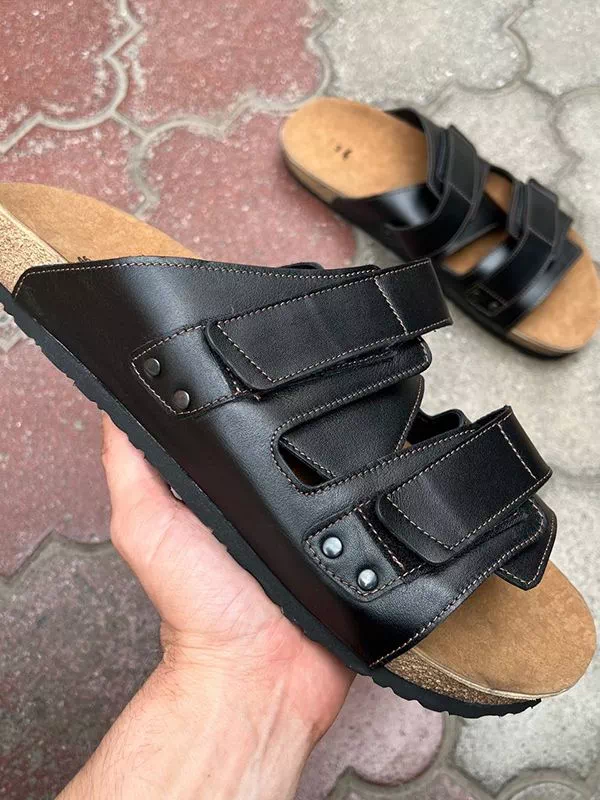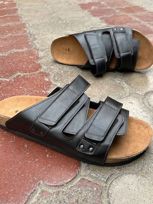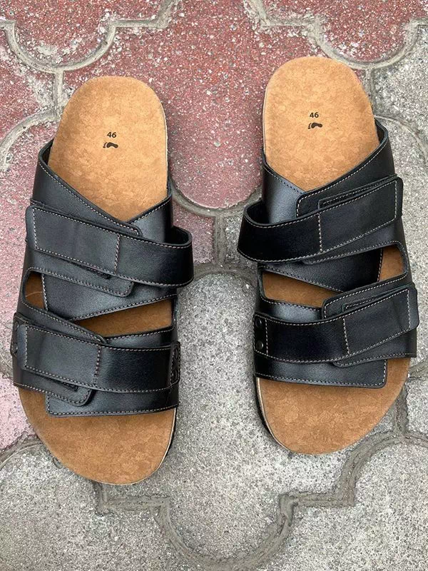 Шикарные мужские шлепанцы больших размеров в черном исполнении на все случаи жизни.