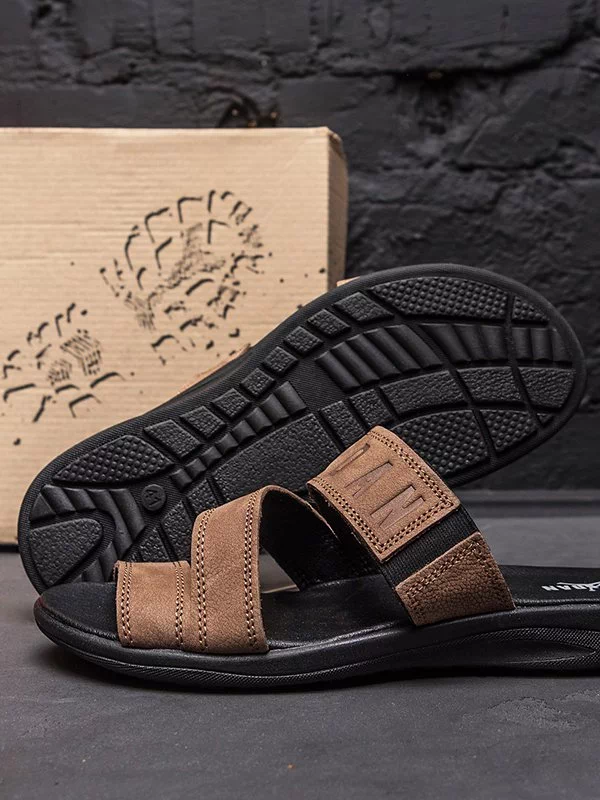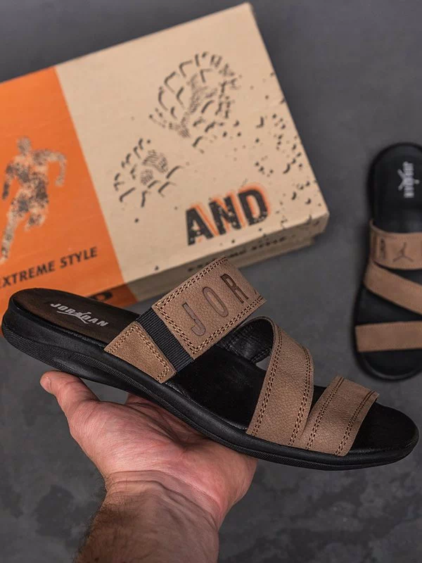 Интересные мужские шлёпанцы в бежевом исполнении на любые случаи жизни.