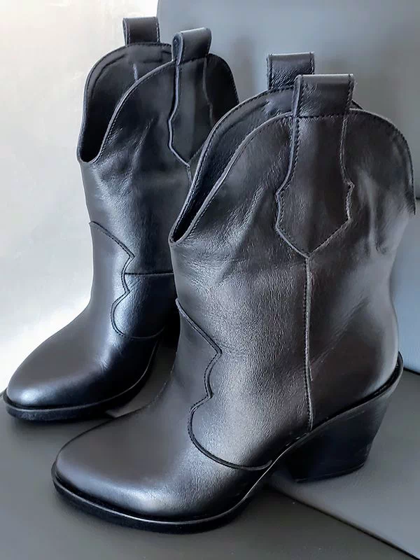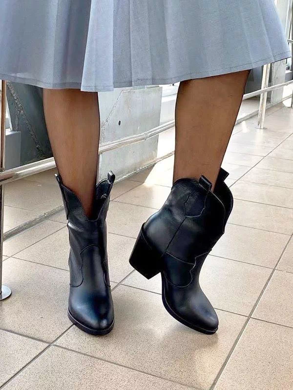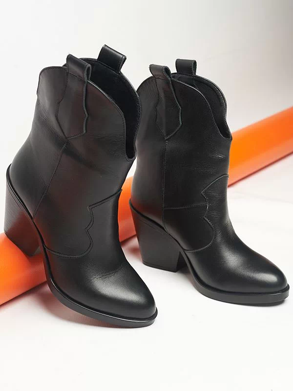 Be the first to review “Осенние ботильоны-казаки из черной натуральной кожи на байке”