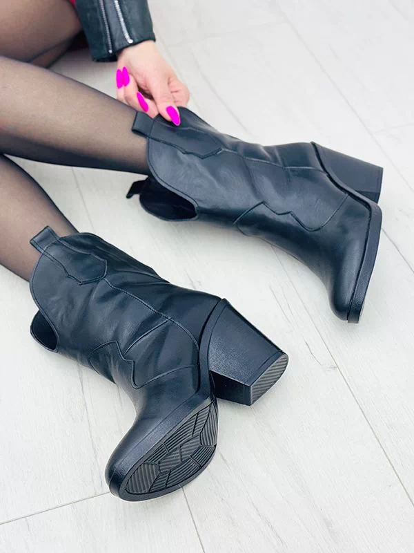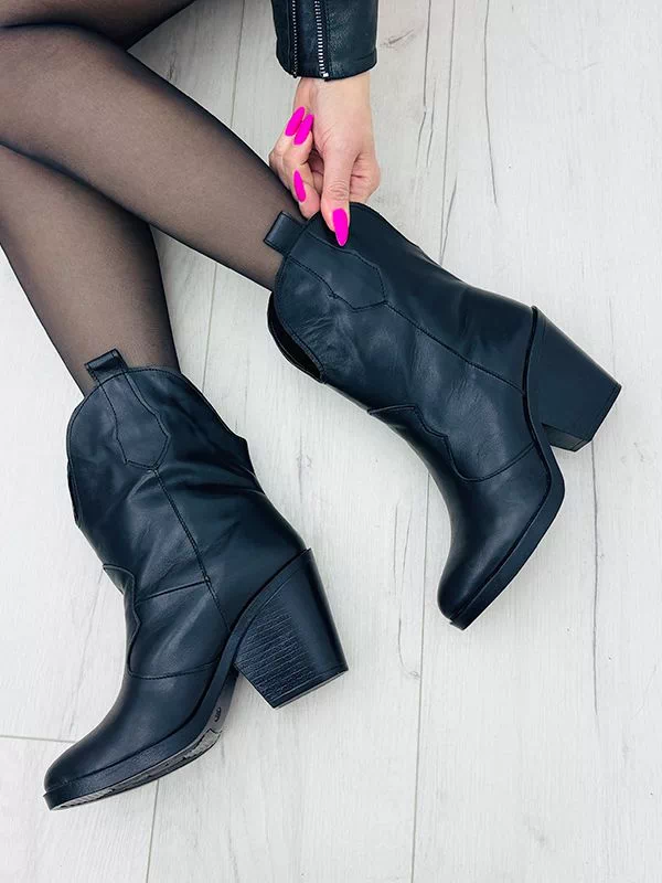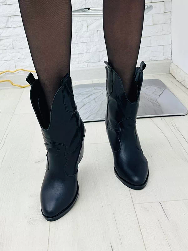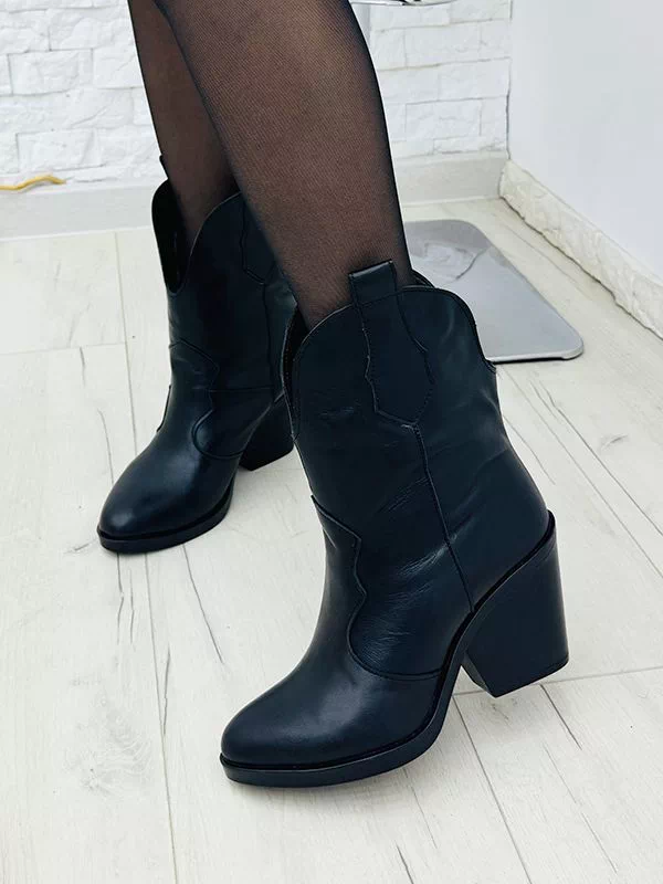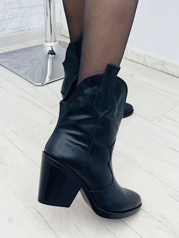 Осенние ботильоны-казаки из черной натуральной кожи на байке