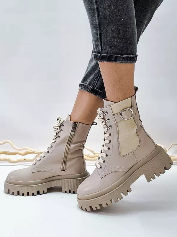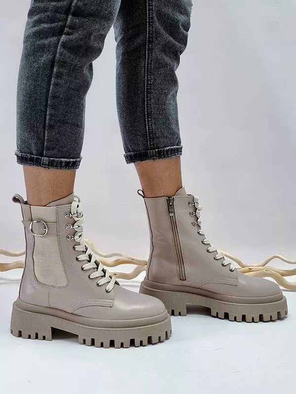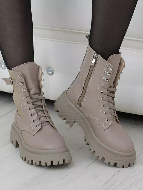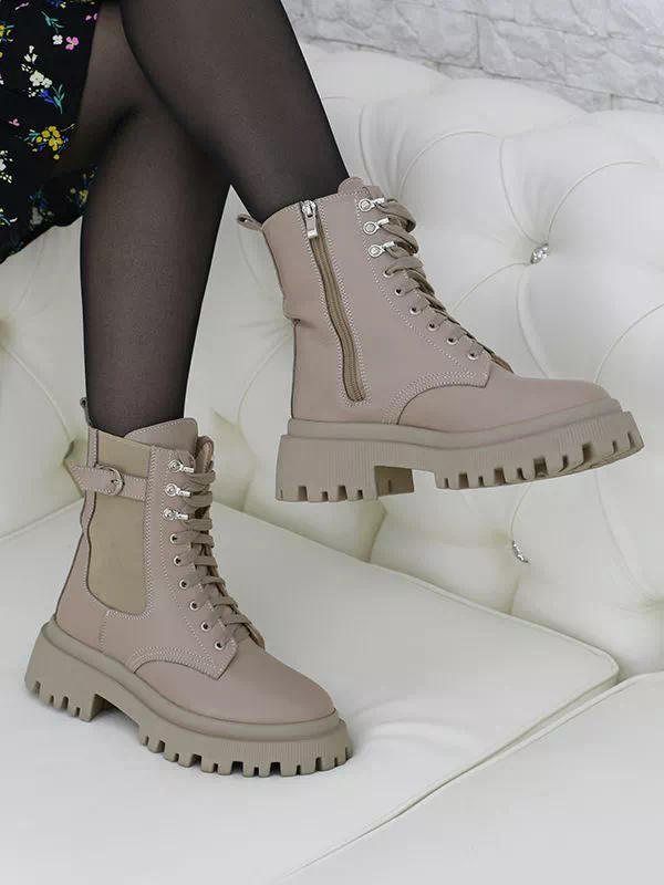 Изящные осенние женские ботинки в темно-бежевом исполнении (визон) на все случаи жизни.