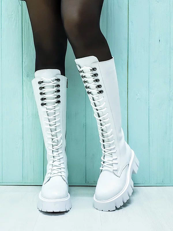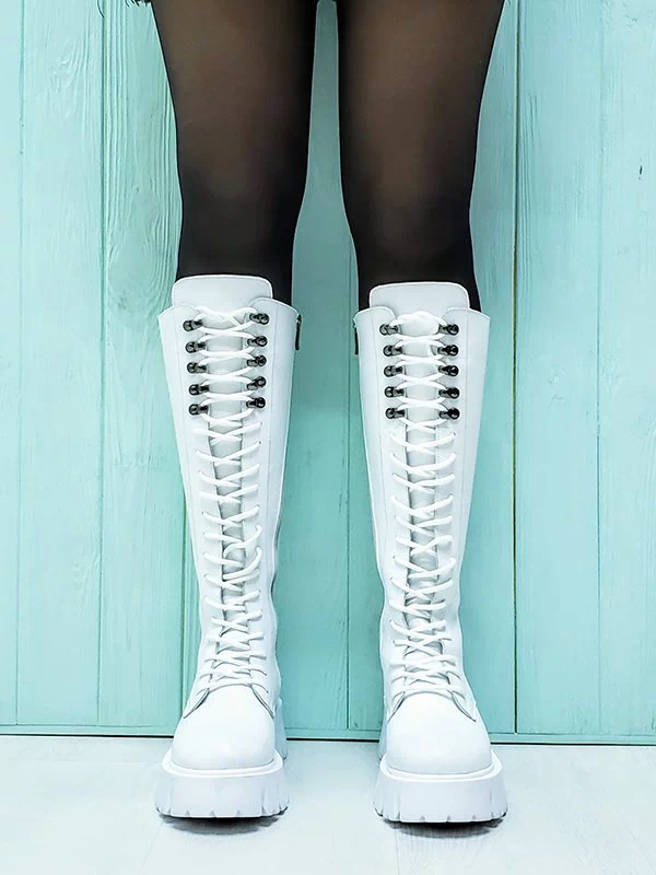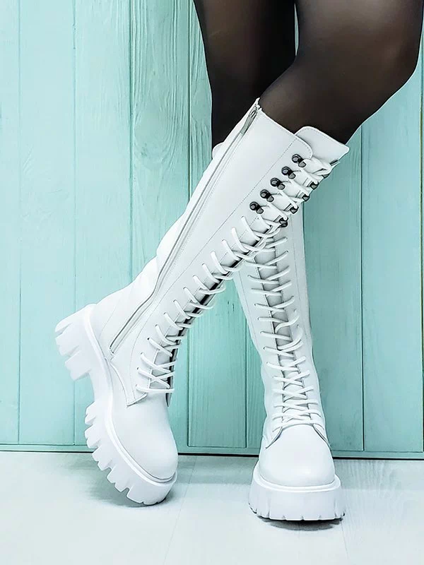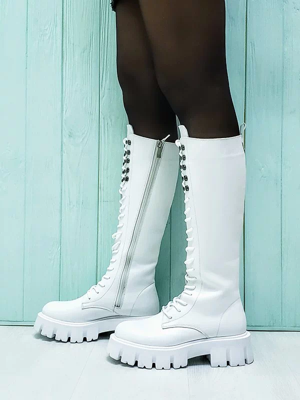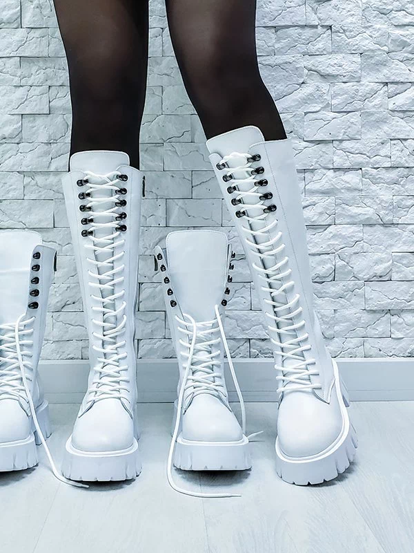 Мощные высокие зимние женские ботинки в белом исполнении на все случаи жизни.