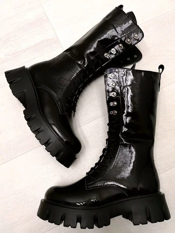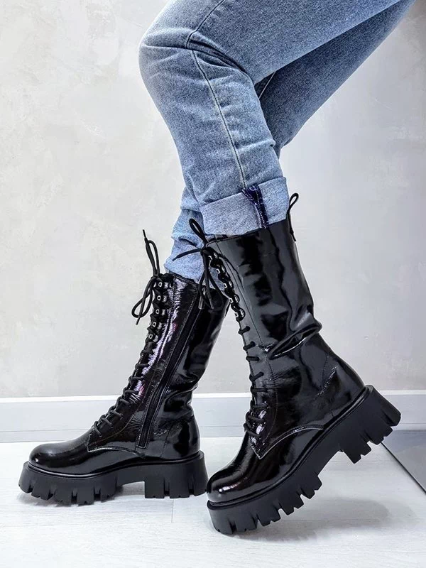 Восхитительные лаковые зимние женские ботинки чёрного цвета на все случаи жизни.
