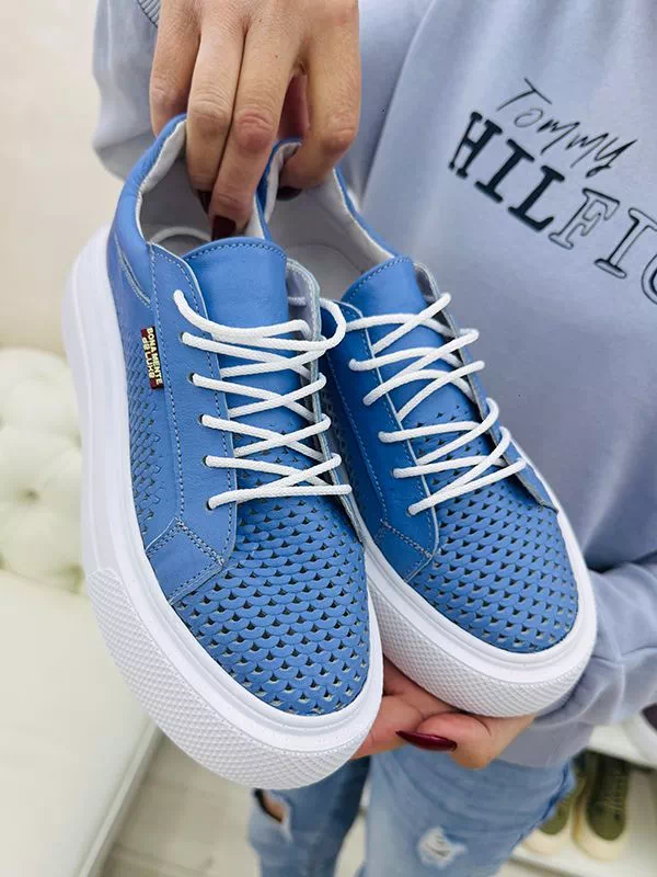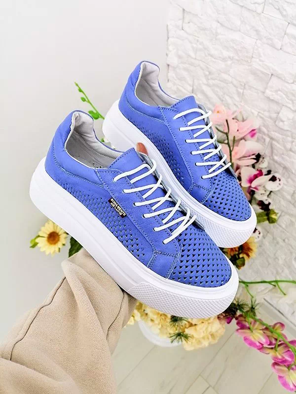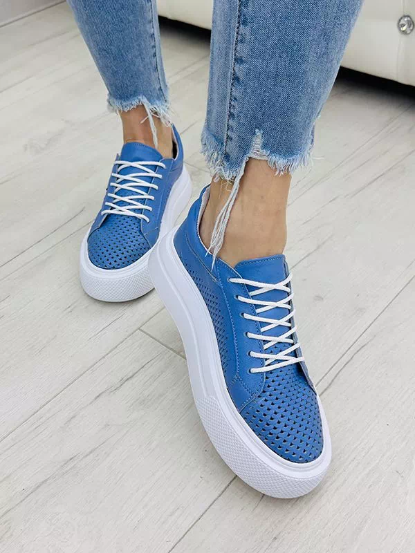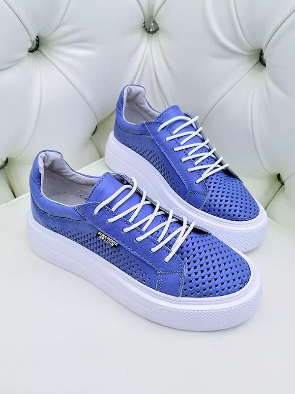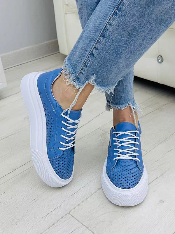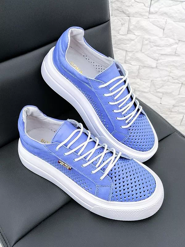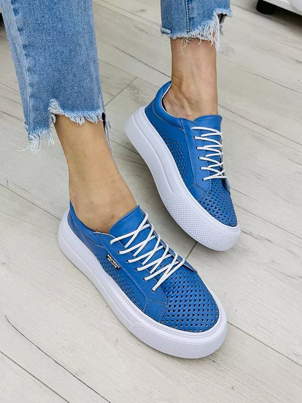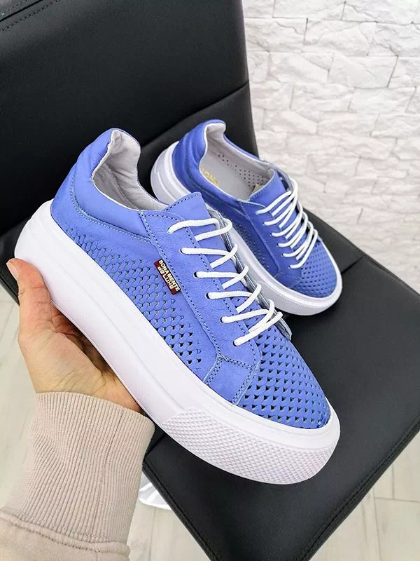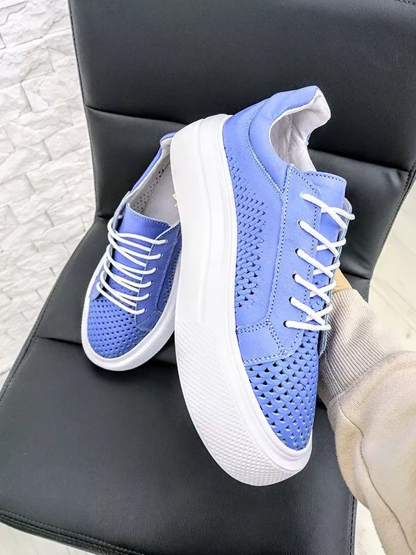 Кожаные летние кеды синего цвета с перфорацией