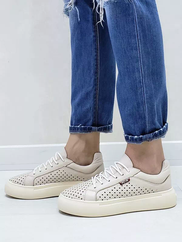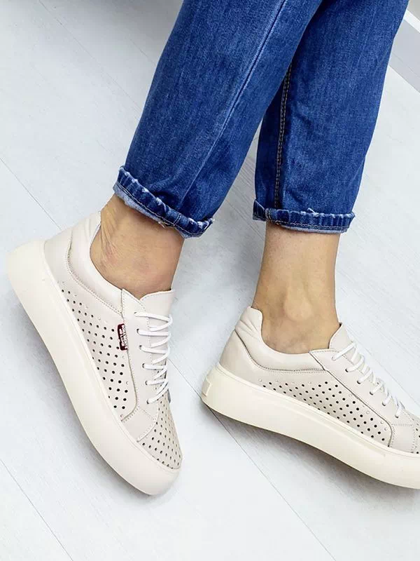 Великолепные летние женские кеды светло-бежевого цвета на любые случаи жизни.