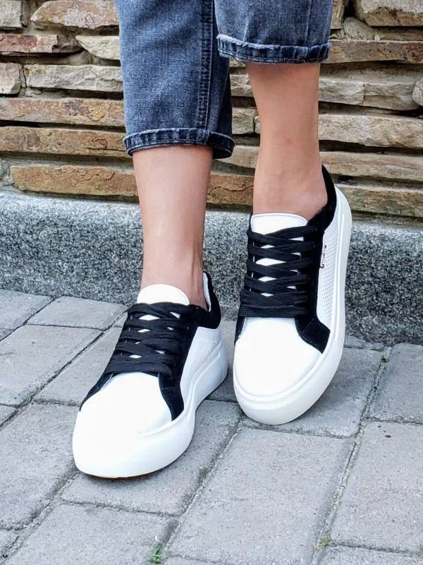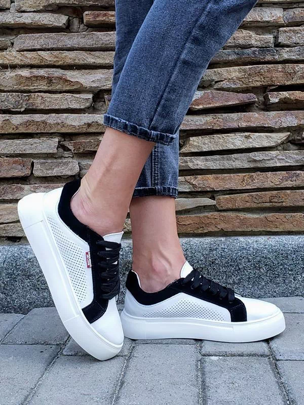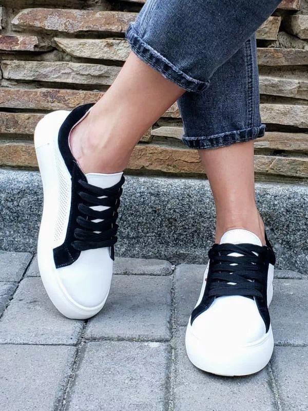 Элегантные женские кеды в белом исполнении с черными вставками на все случаи жизни.