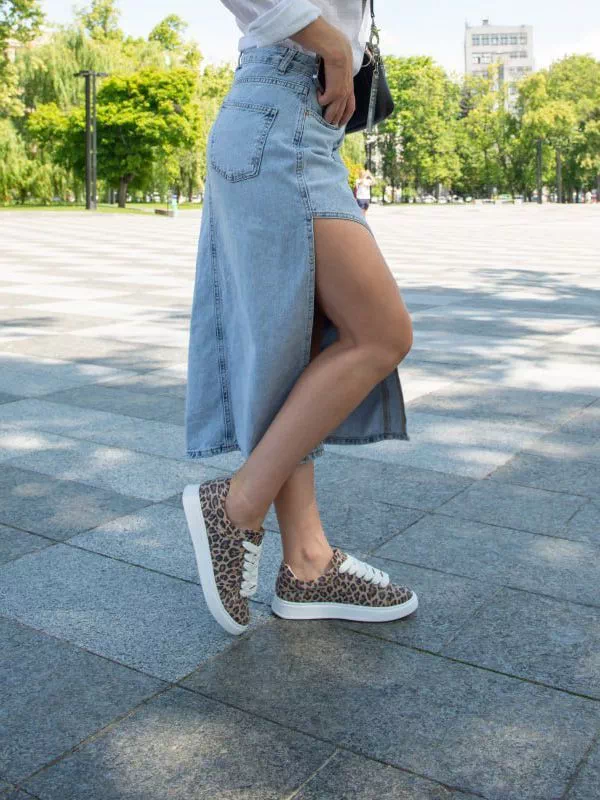 Интересные женские кеды пудрово-леопардового оттенка на любые случаи жизни.