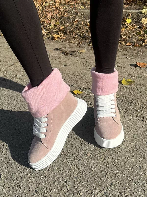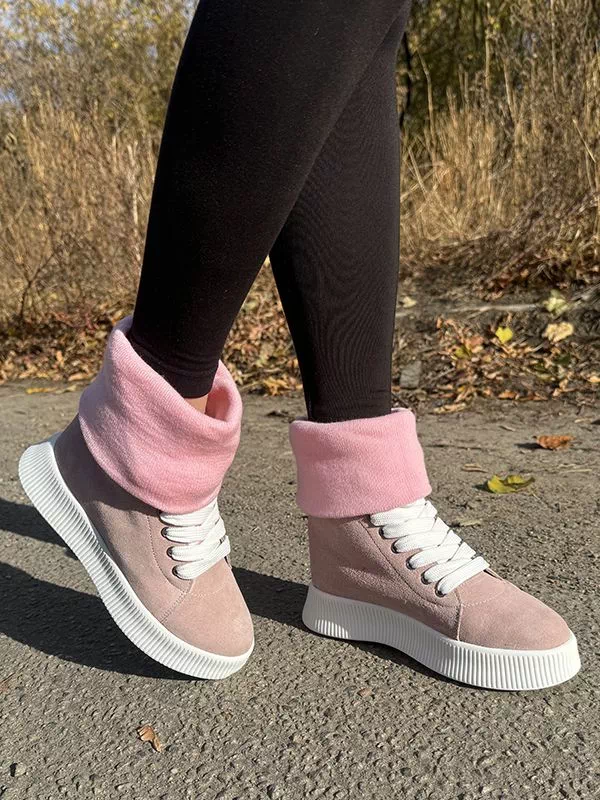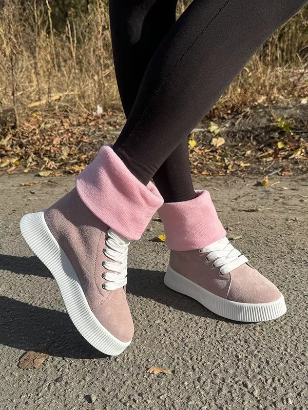 Be the first to review “Замшевые зимние кеды пудрового оттенка с шерстяным довязом”