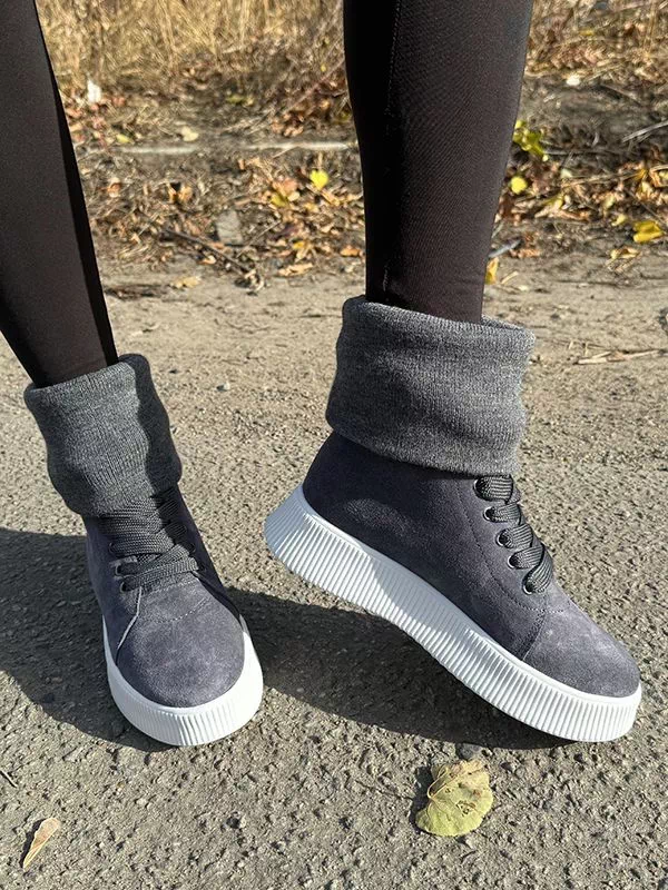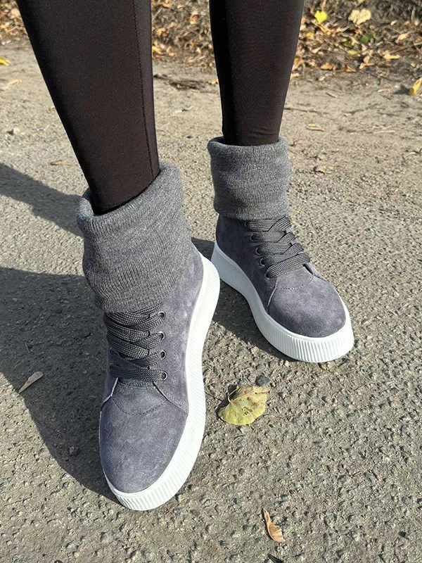 Зимние замшевые кеды с довязом в бело-сером исполнении