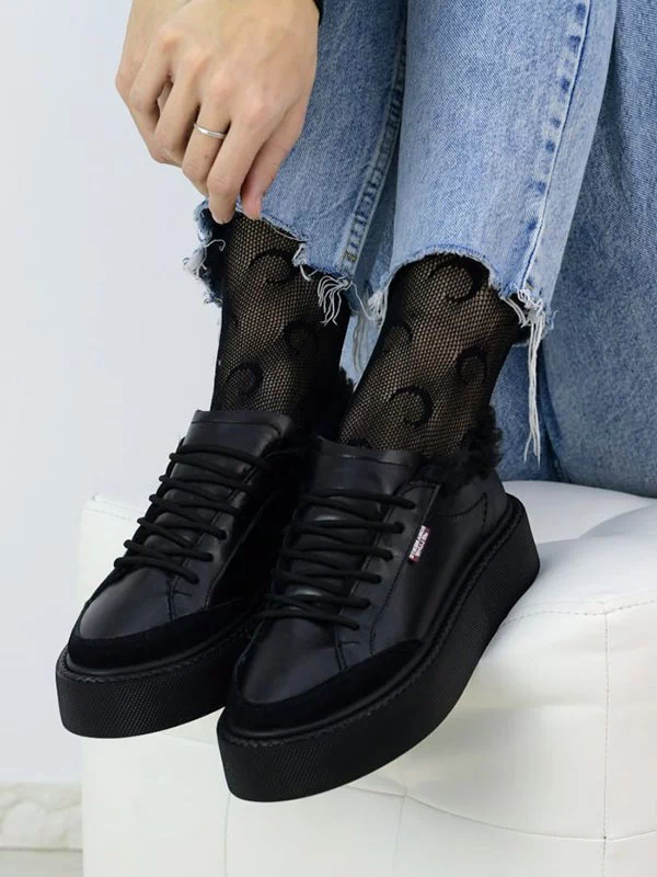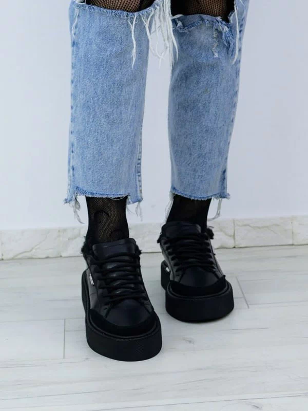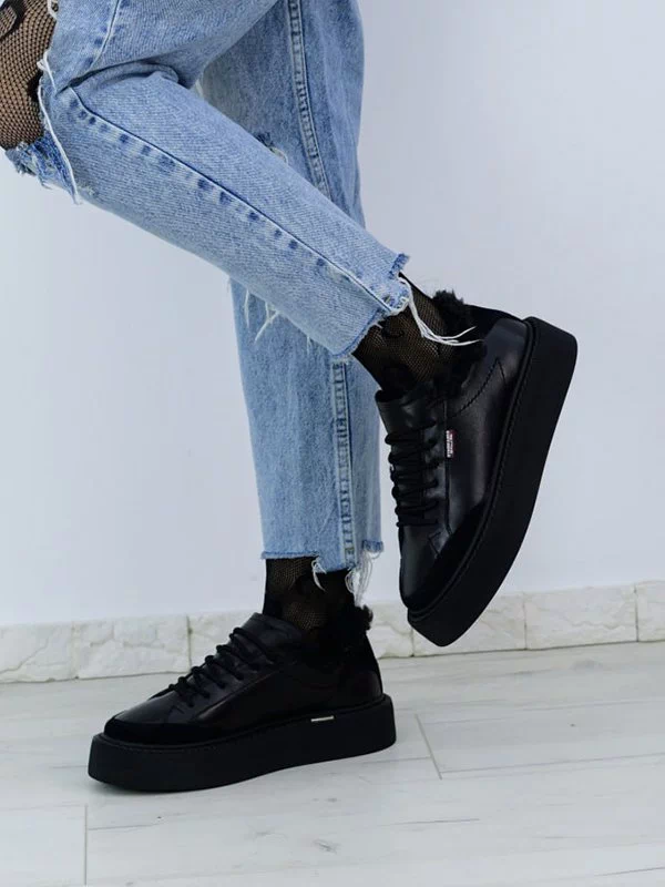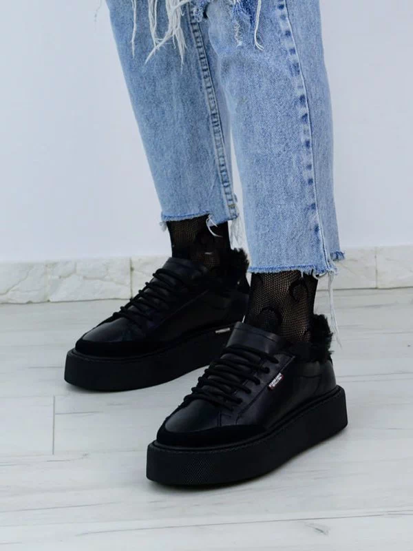 Изящные зимние женские кеды черного цвета на любые случаи жизни.