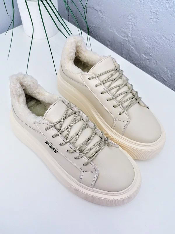Кожаные зимние кеды в светло-бежевом исполнении