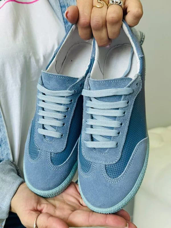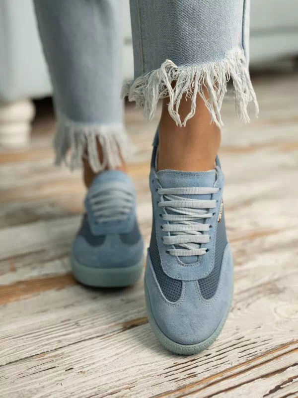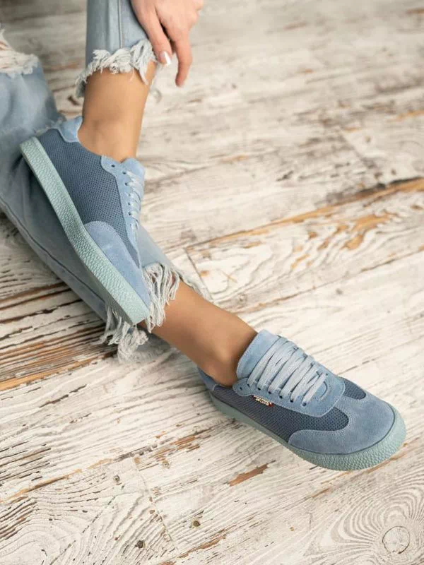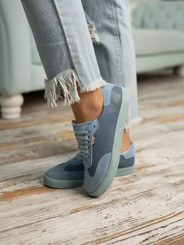 Кроссовки из натуральной замши и кожи голубого оттенка