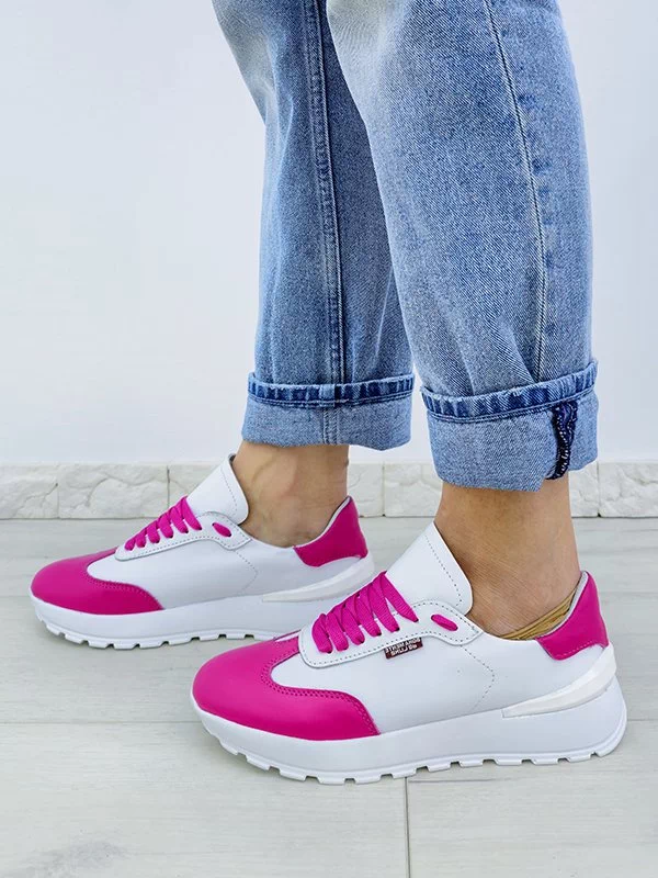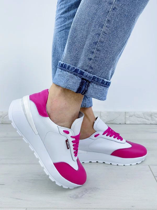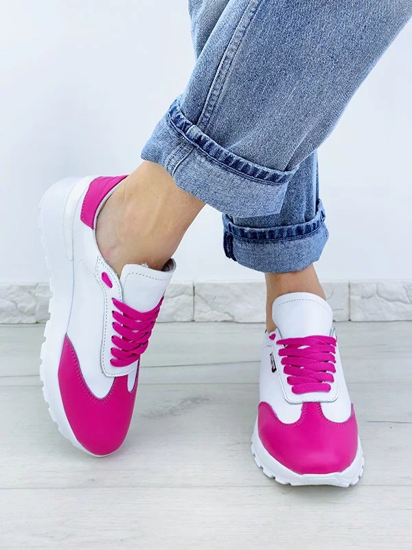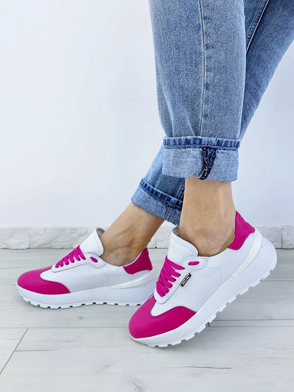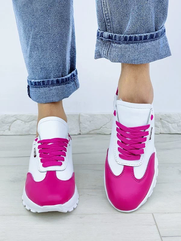 Яркие женские кроссовки в малиново-белом исполнении на все случаи жизни.