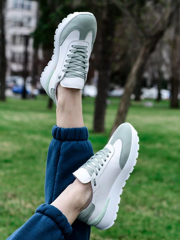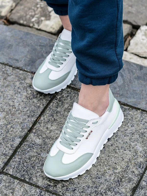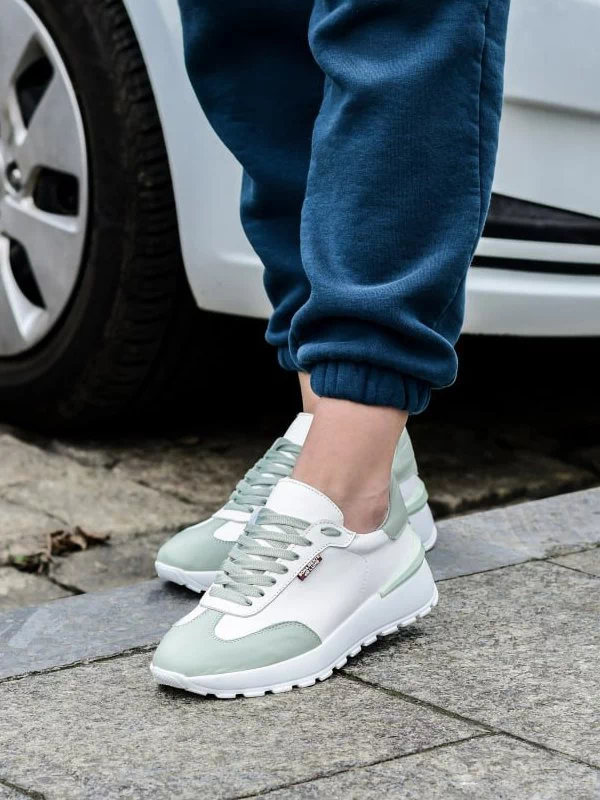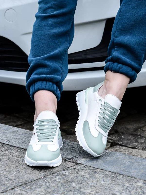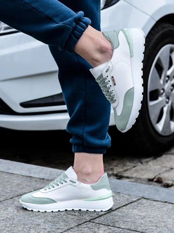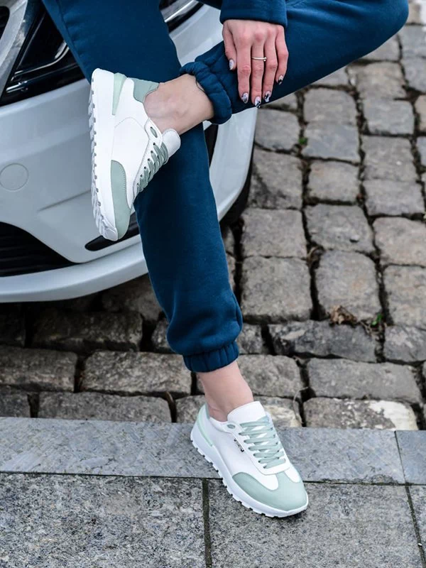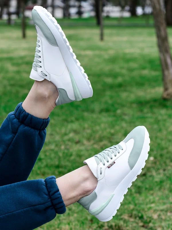 Белые кожаные кроссовки со вставками оттенка «фреш»