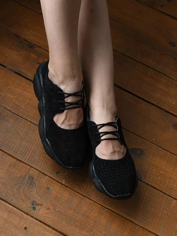 Облегченные черные замшевые летние кроссовки с перфорацией