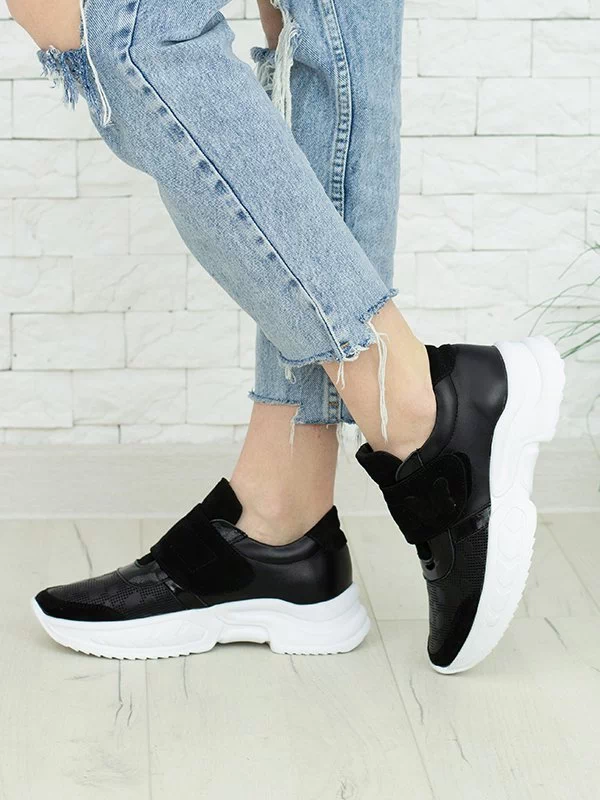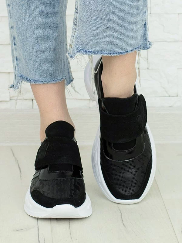 Be the first to review “Чёрные кроссовки на липучках из натуральной кожи и замши”