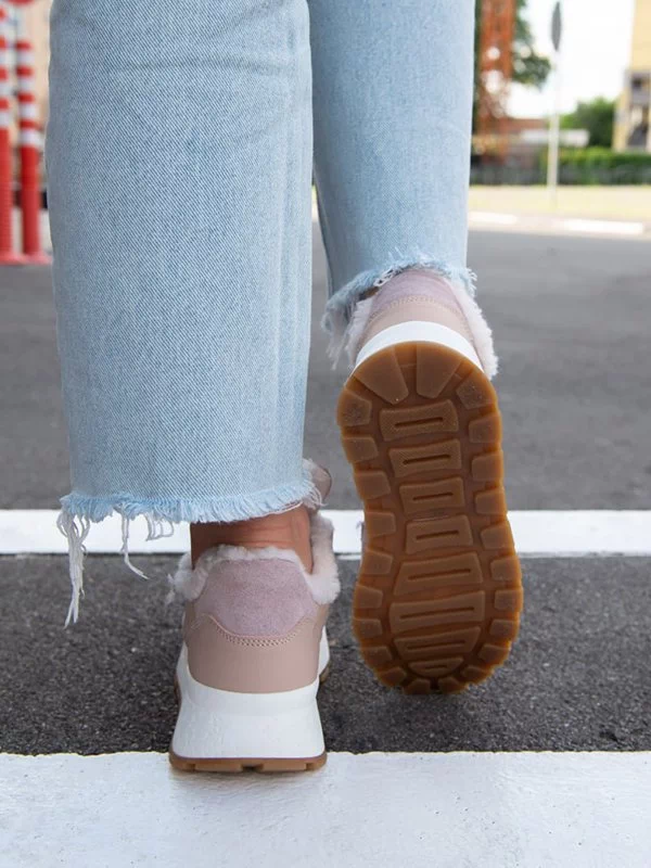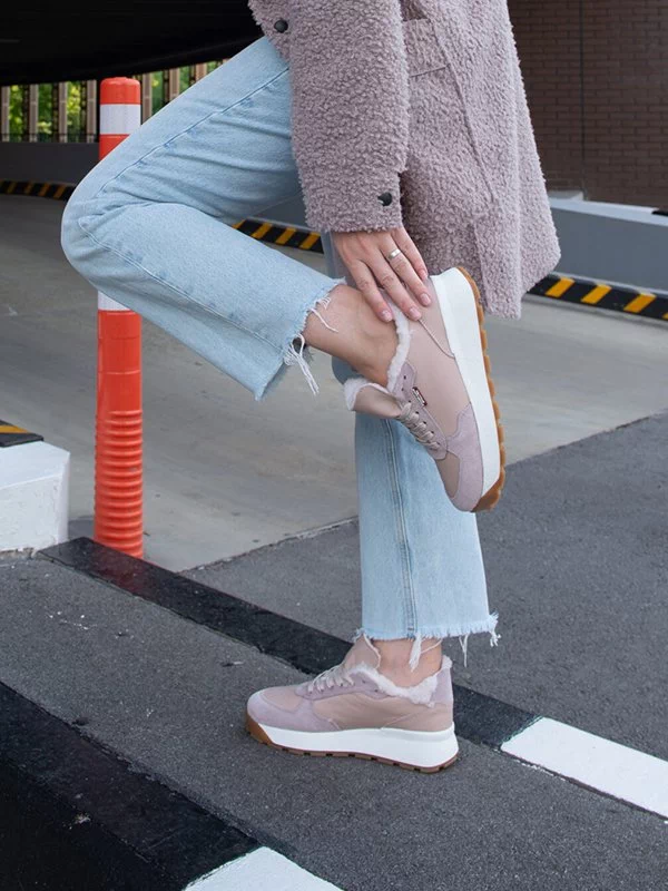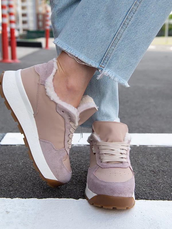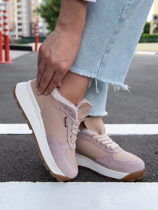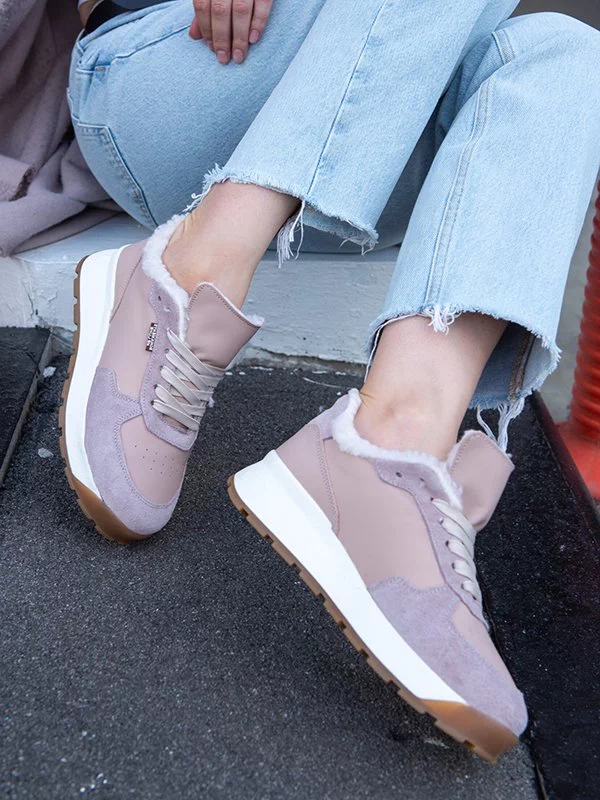 Пудровые зимние кроссовки из натуральной кожи и замши