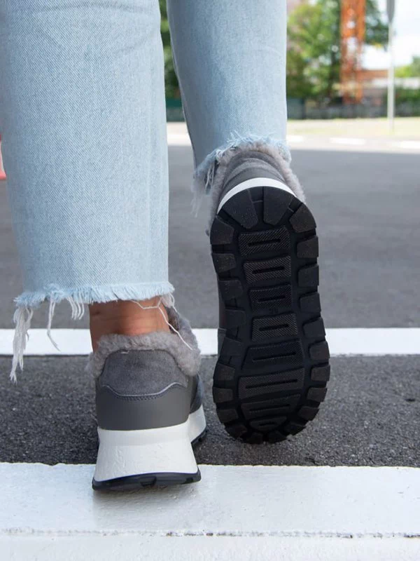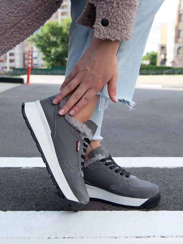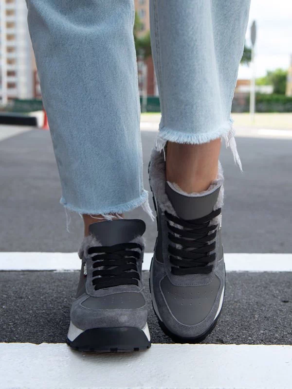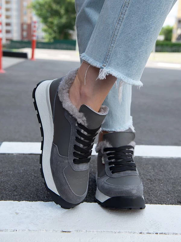 Серые зимние кроссовки из натуральной кожи и замши