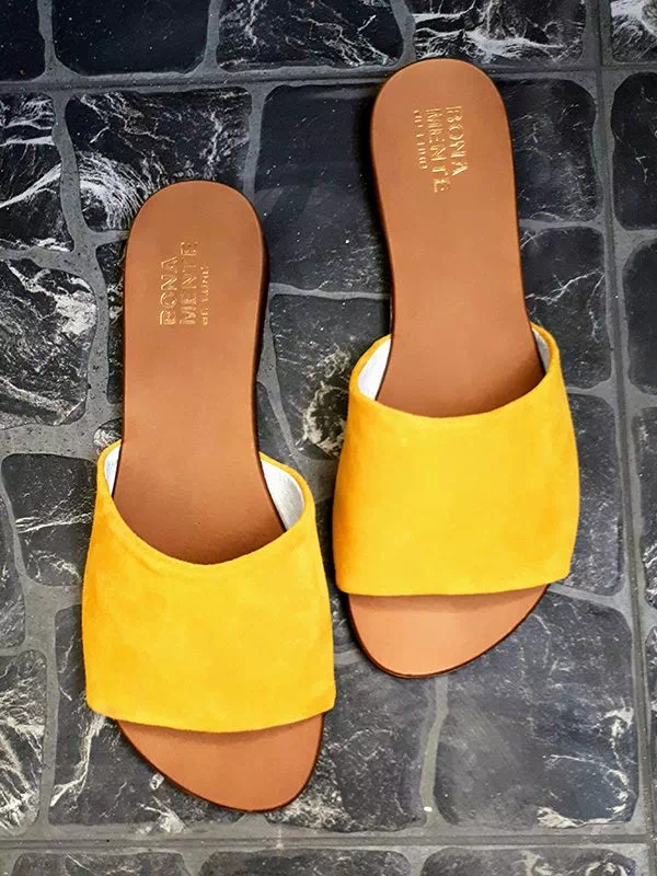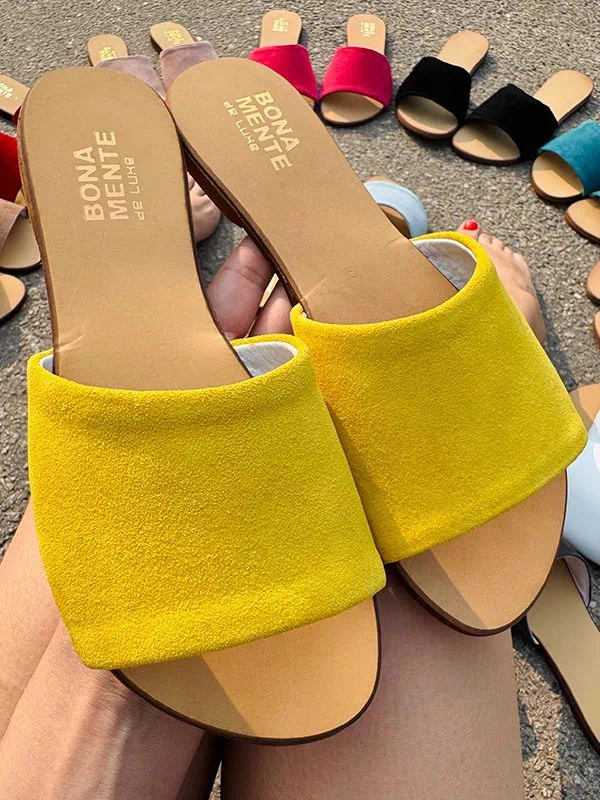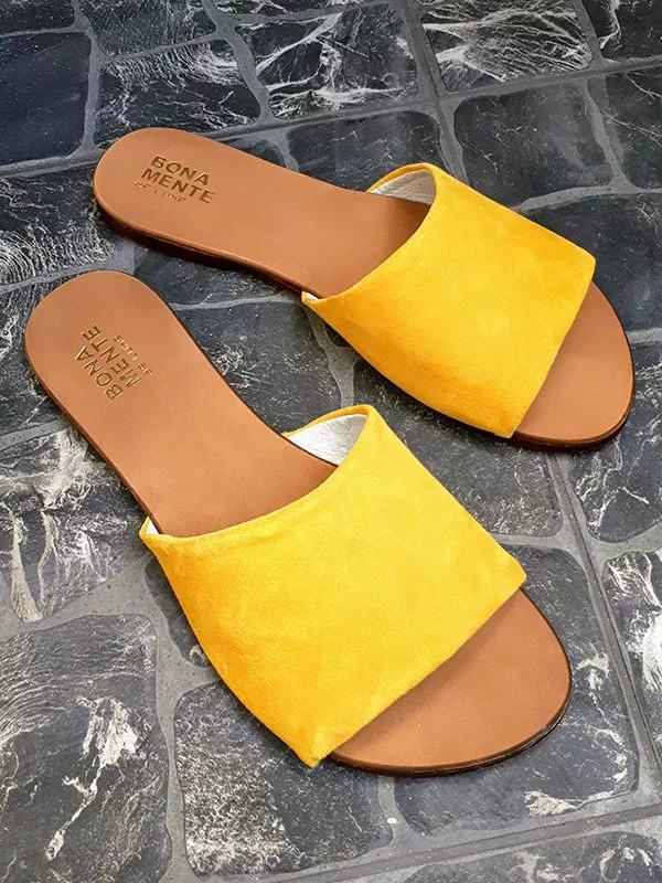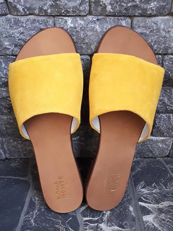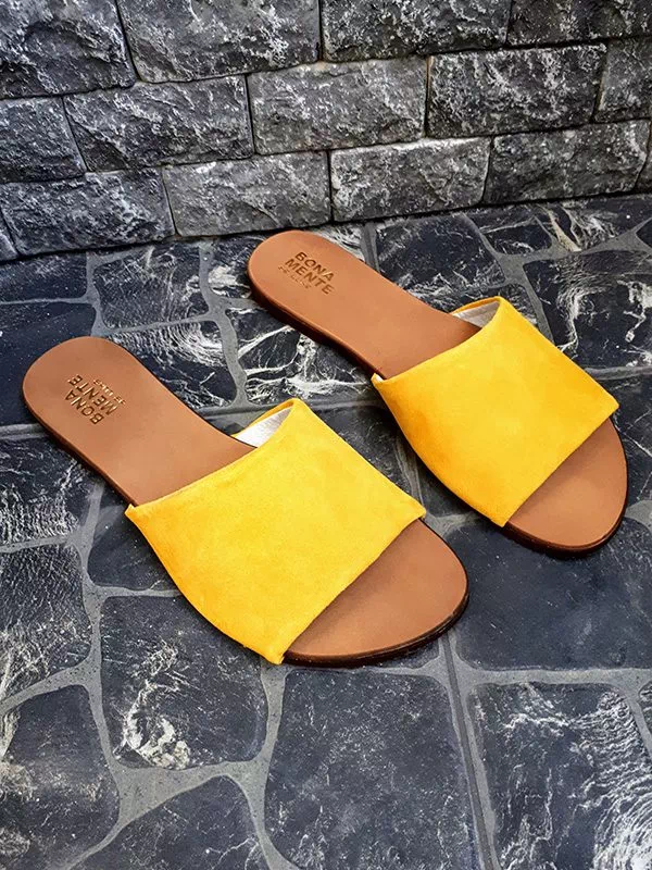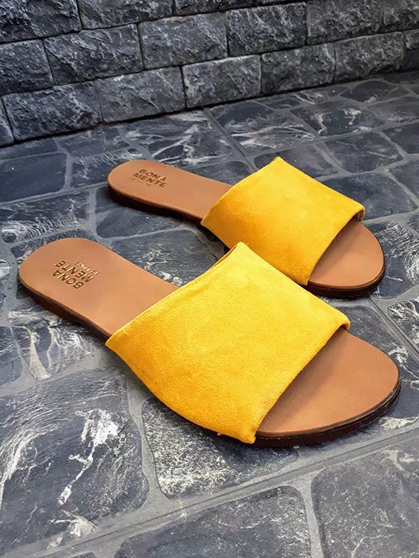 Яркие низкие женские шлепанцы желтого цвета на любые случаи жизни.