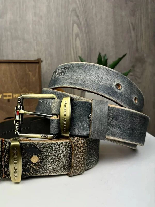 Мужской ремень TH-1550 – прекрасное решение для использования с джинсами, штанами, деловым, кэжуал стилем одежды и т.п. Изготовлен из винтажной натуральной кожи, присутствует фирменное тиснение и декоративная прошивка. Используется механическая пряжка золотистого оттенка из качественного сплава. Данный мужской пояс добавит элегантности вашему стилю. Великолепный выбор в качестве подарка для любого мужчины. Страна производитель – Украина.