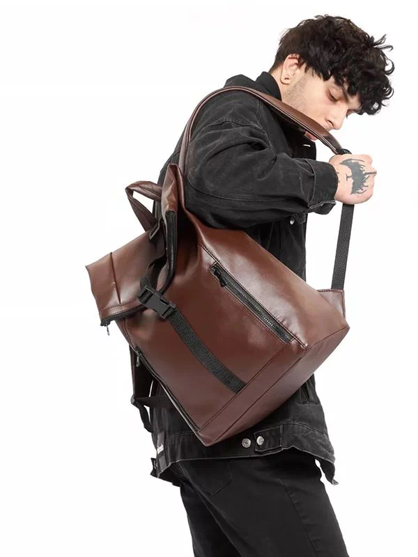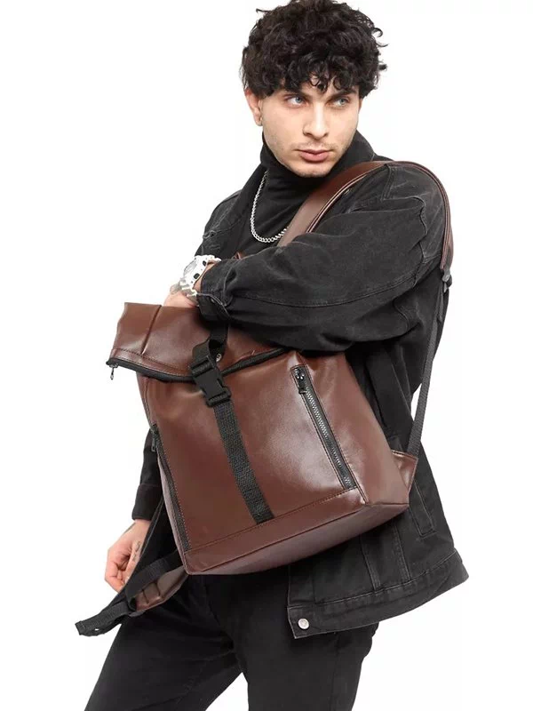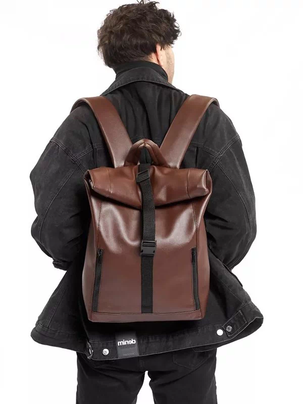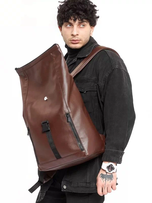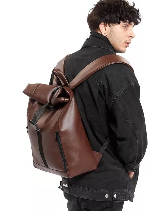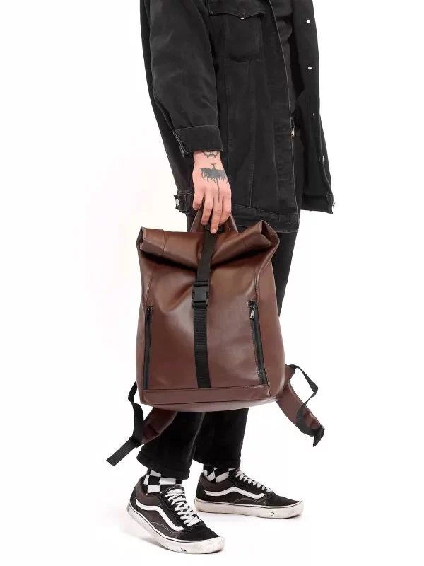 Вместительный рюкзак-ролл из коричневой эко-кожи