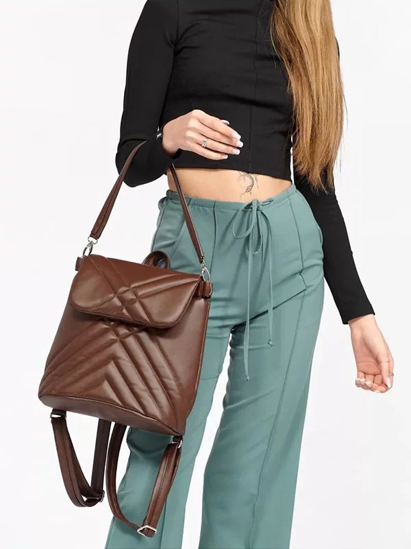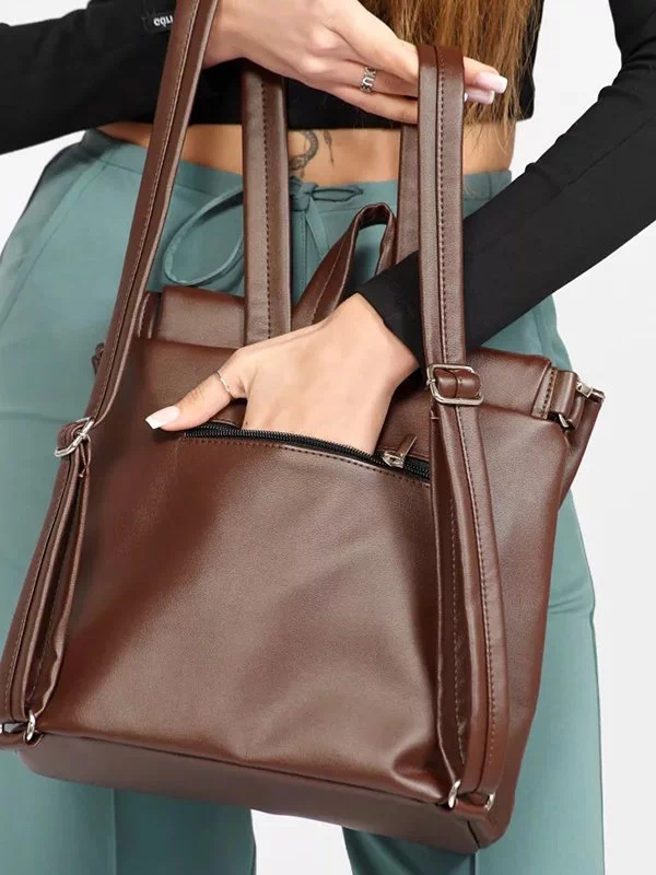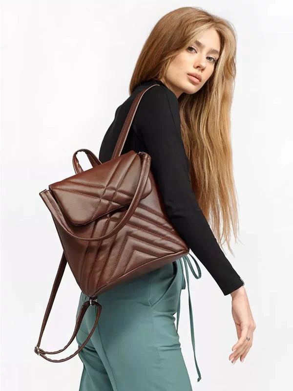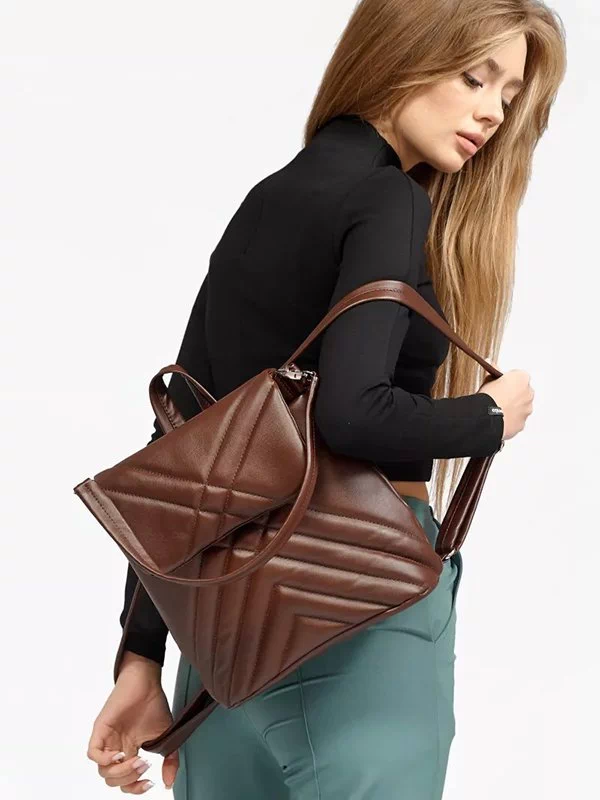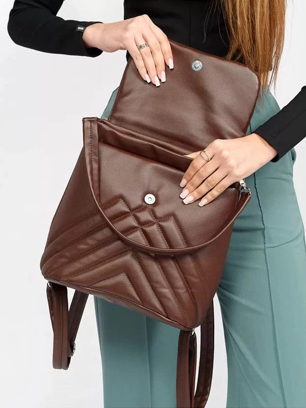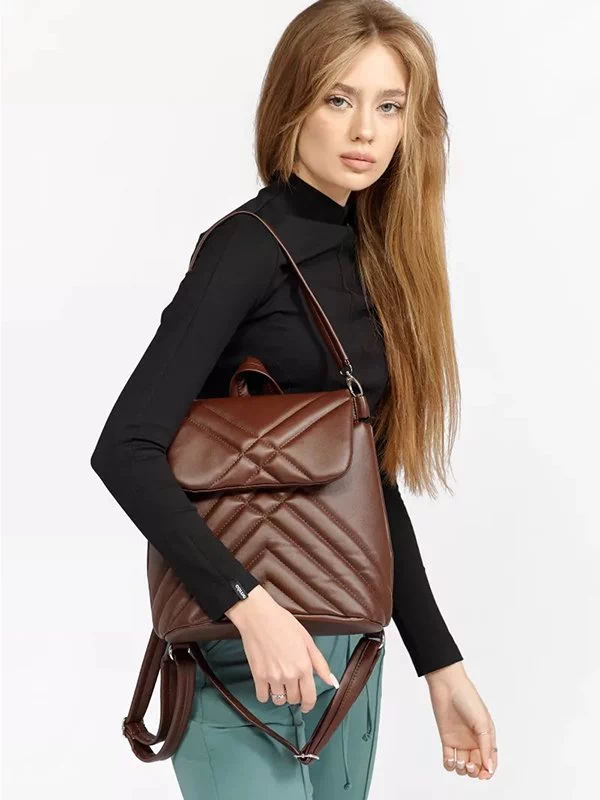 Изысканный женский рюкзак-сумка в коричневом исполнении на любые случаи жизни.