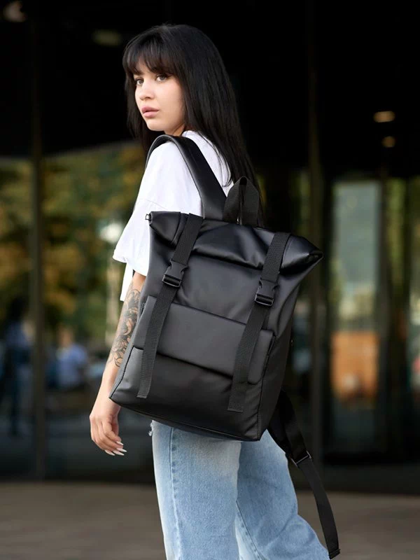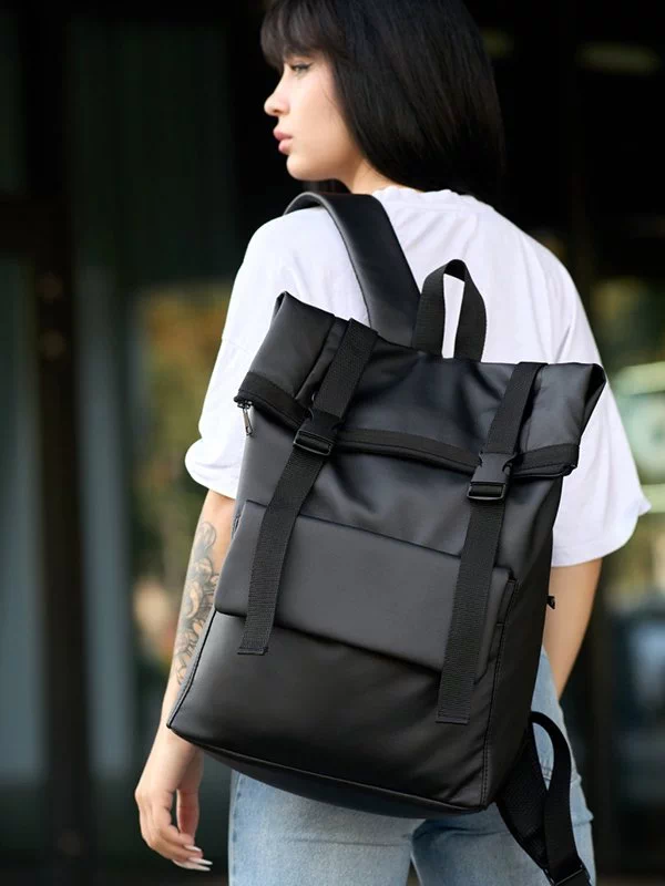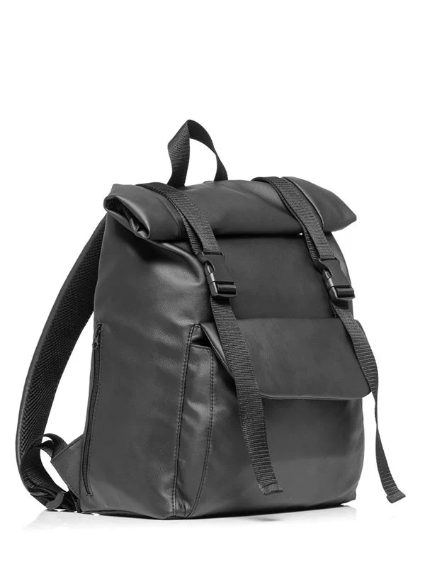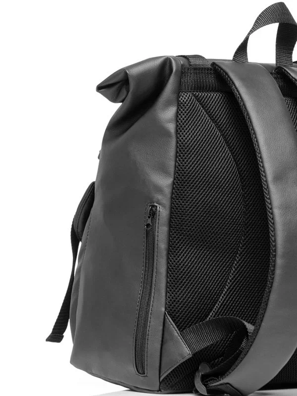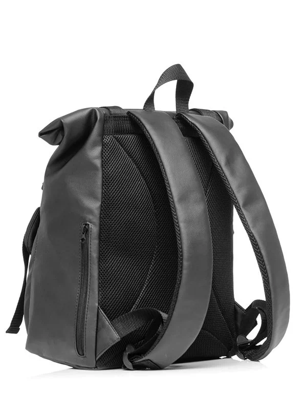 Вместительный рюкзак-ролл графитового цвета из эко-кожи
