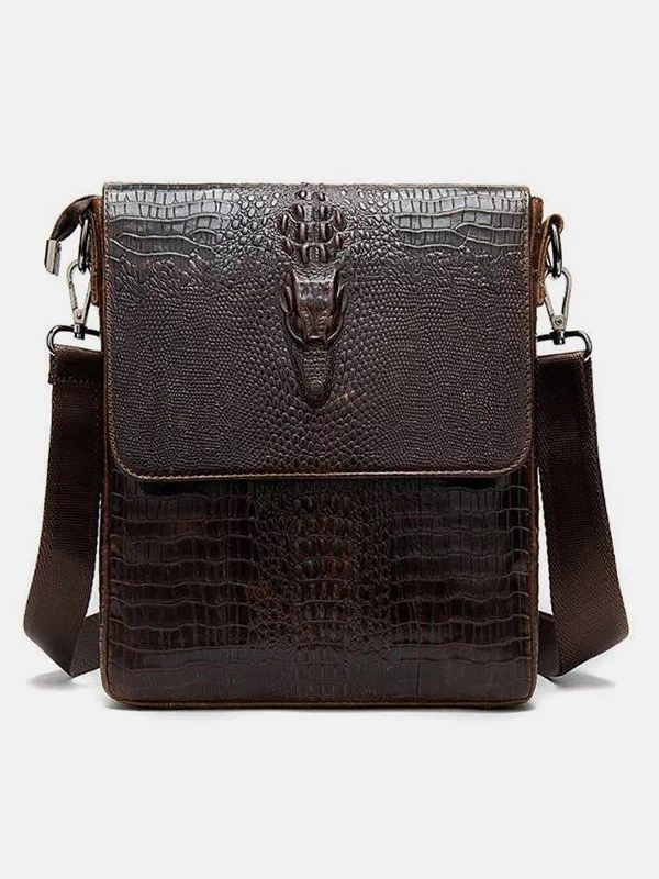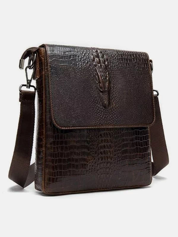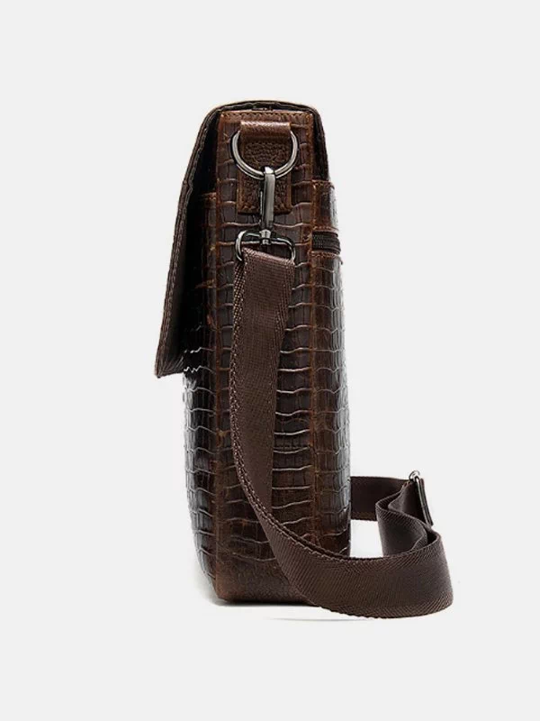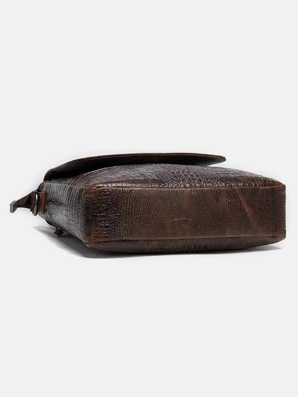 Коричневая сумка-мессенджер из натуральной кожи «под крокодила»