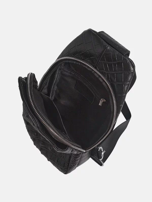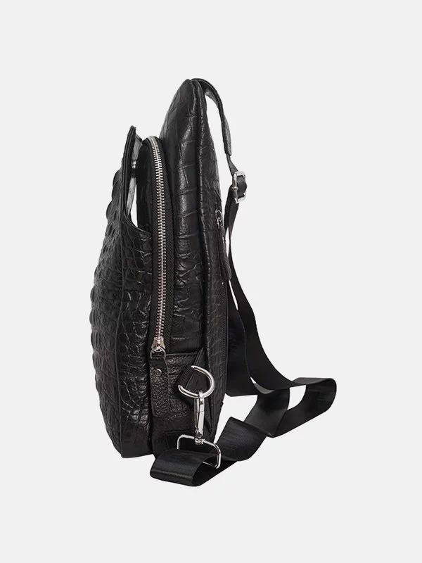 Малый мужской рюкзак BB-123 – грамотный вариант для небольших вещей, различных мелочей (ключей, денег, павербанков, наушников, смартфонов, зарядных устройств и т.п.). Пошит из фактурной натуральной кожи «под крокодила» в черном исполнении. Неприхотлив в уходе, имеет аккуратный внешний вид, качественный пошив. Мини-рюкзак пользуется большой популярностью на украинском рынке, особенно у молодежи. Страна производитель бренда – Китай.