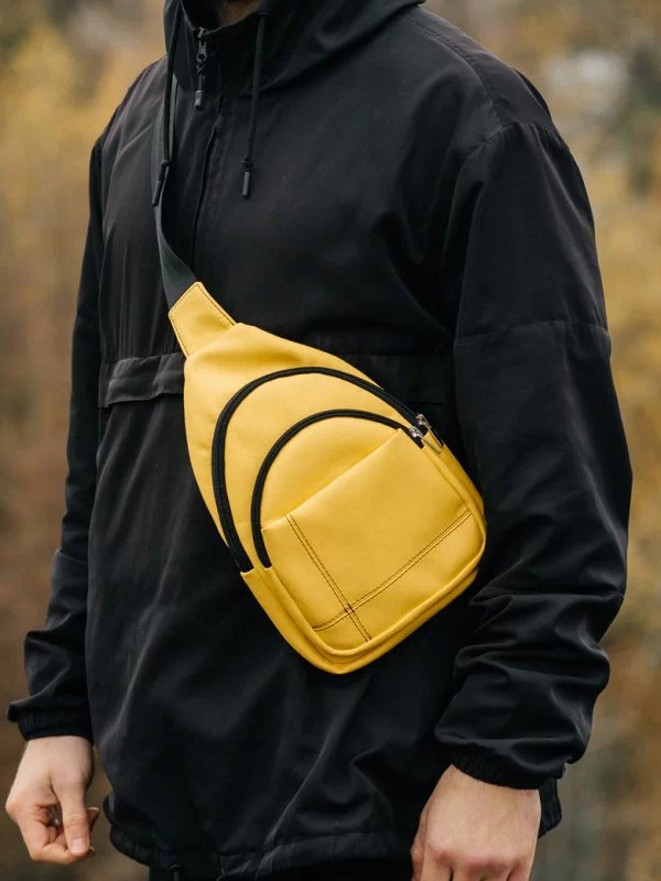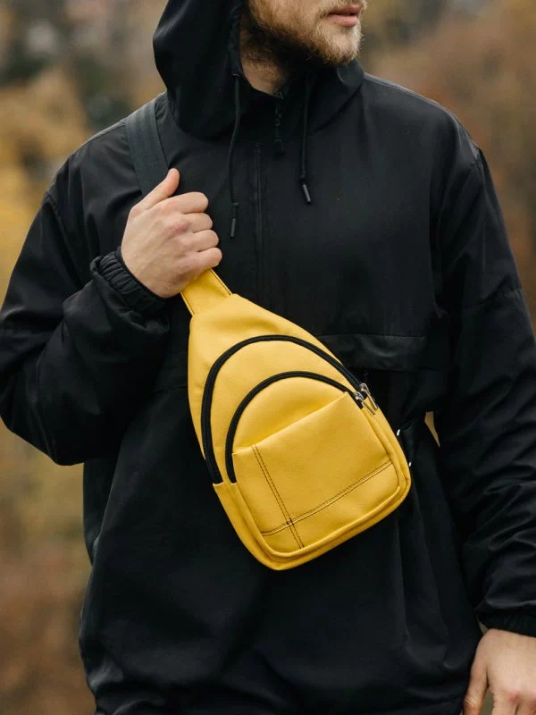 Шикарная мужская сумка на плечо, жёлтого цвета на любые случаи жизни.