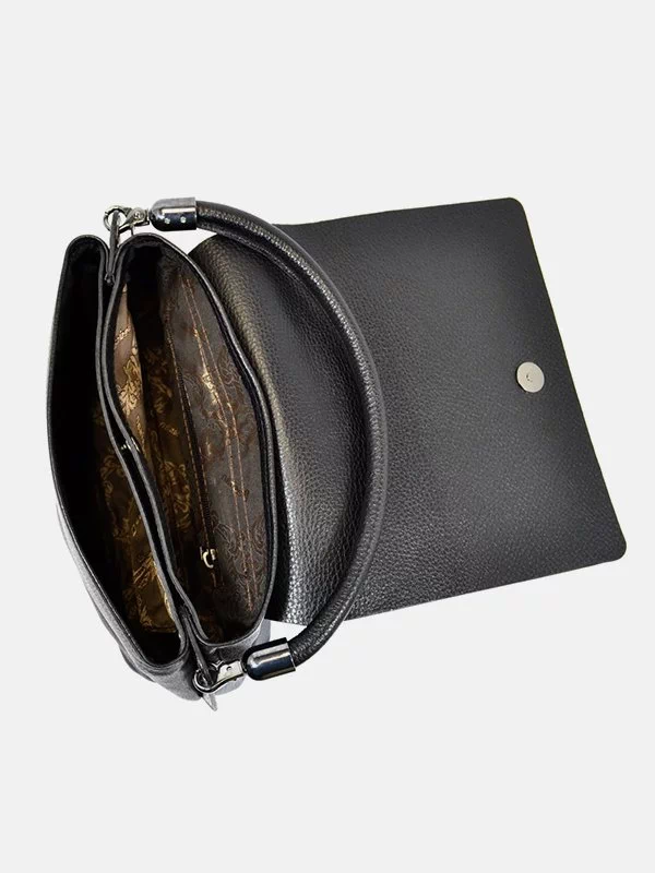 Женская сумка D-1801 – идеальный вариант для небольших вещей, денег, различных мелочей (косметики, ключей, павербанков, наушников, смартфонов, зарядных устройств и т.п.). Пошита из зернистой натуральной кожи флотар в черном исполнении. Сумка неприхотлива в уходе, имеет эффектный внешний вид, качественный пошив. Добавит элегантности практически любому образу. Страна производитель бренда – Турция.
