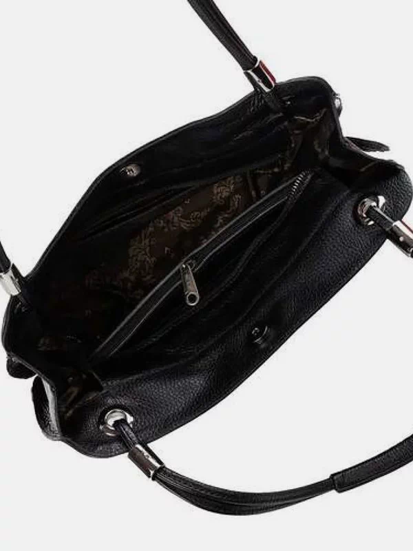 Женская сумка D-4601 – разумное решение для небольших вещей, различных мелочей (косметики, денег, ключей, павербанков, наушников, смартфонов, зарядных устройств и т.п.). Пошита из фактурной натуральной кожи флотар черного цвета. Сумка неприхотлива в уходе, имеет элегантный внешний вид, качественный пошив. Удачно подчеркнет практически любой образ. Страна производитель бренда – Турция.